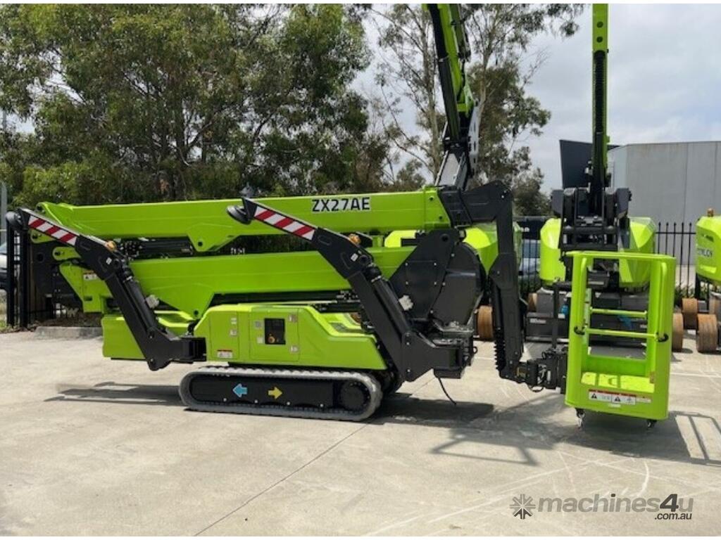 2024 Zoomlion 27m Spider Crawler EWP – 230kg capacity, 14.2m outreach, lithium-ion power, ultra-narrow 0.89m width, non-marking tracks, and wireless remote. Auto-leveling and full safety features. Enquire now!