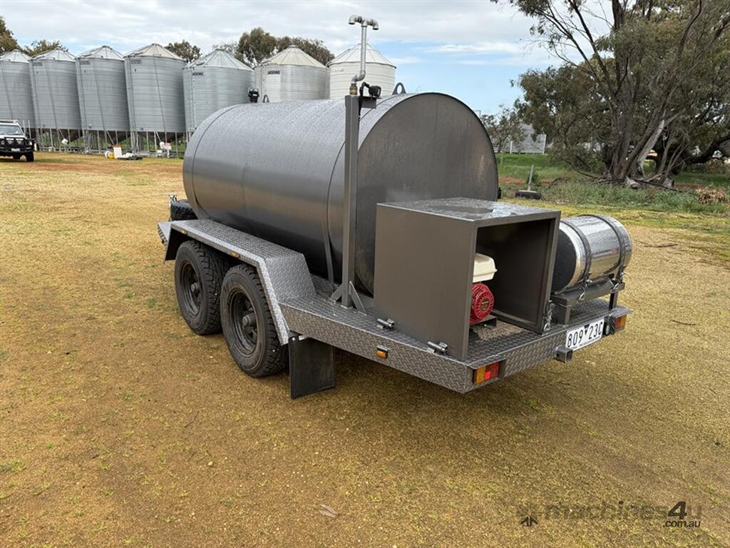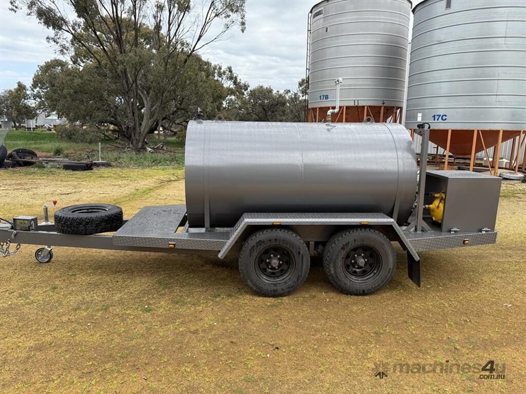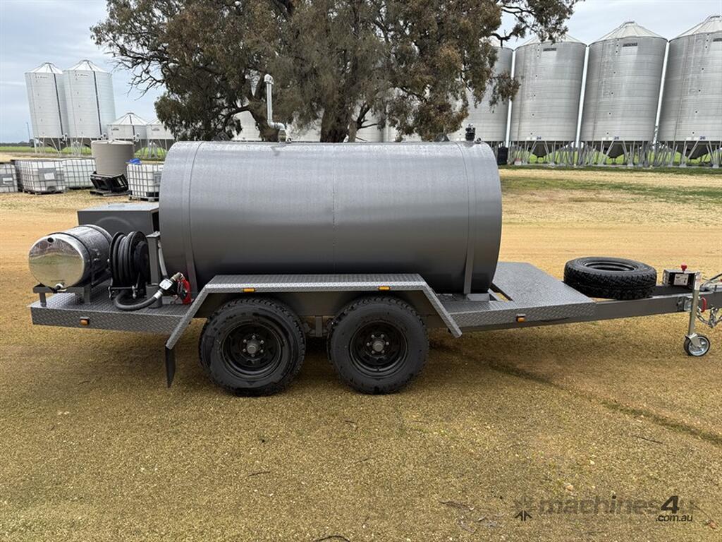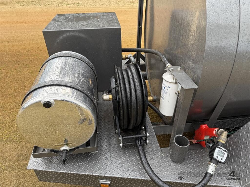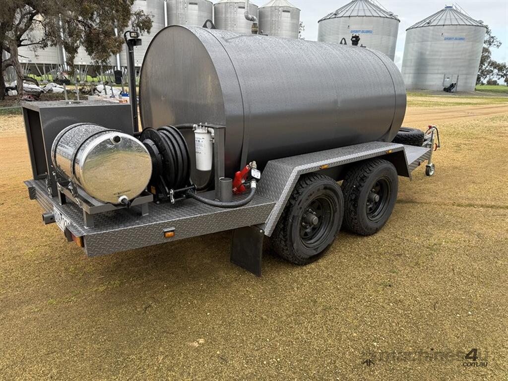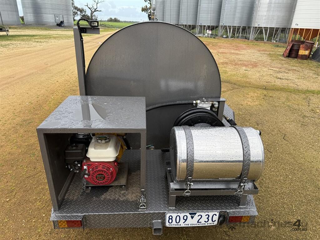 honda pump with viton seals, Electric Brakes, 10 Meter retractable reel, Fuel Filter, Auto shut off nozzle, Litre counter, Water tank, End plates and baffles in tank, 2.5T rated per axle/ Heavy duty hub, work light with switch Located Minyip Vic, Call Levi Hughes on for more info.