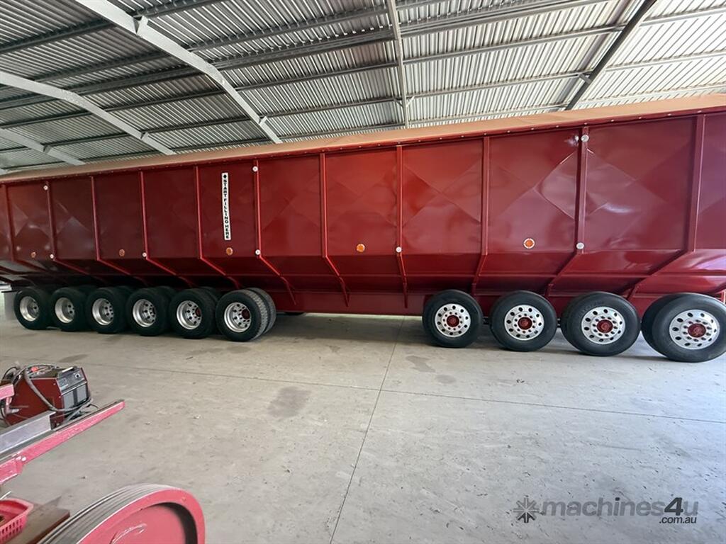 2025 DALTON ENGINEERING 135T MOTHER BIN. PTO drive, hydraulic folding 15" auger, 2 half bin roll up tarps which allows filling from both side, LED lights and flashing light fitted, three inspection windows on left hand side, 11R 22.5 tubless tyres on10 stud aluminium rims, width 3.5m. Free delivery within 500km. Negotiation on any further distance. Located, Balranald NSW.