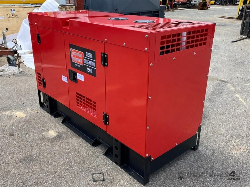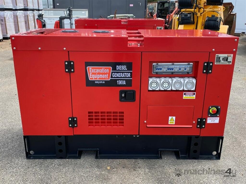 2025 EXEQ 15KVA SILENCED DIESEL GENERATOR. SINGLE & 3 PHASE, E-STOP, BATTERY ISOLATER, FORK POCKETS, LIFTING POINTS, APPROX SHIPPING DIMENSIONS: 1850mm L x 740mm W x 1100mm H. APPROX WEIGHT: 640KGS. THESE WILL BE DELIVERED TO OUR YARD ON FRIDAY 27TH FEBRUARY, PICK ON OR AFTER THAT DAY. LOCATION: HALFERTY STREET, EMERALD, QLD 4720. ENQUIRIES: MATT BEARD ON OR MATTEMERALDAUCTIONCENTRE
