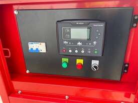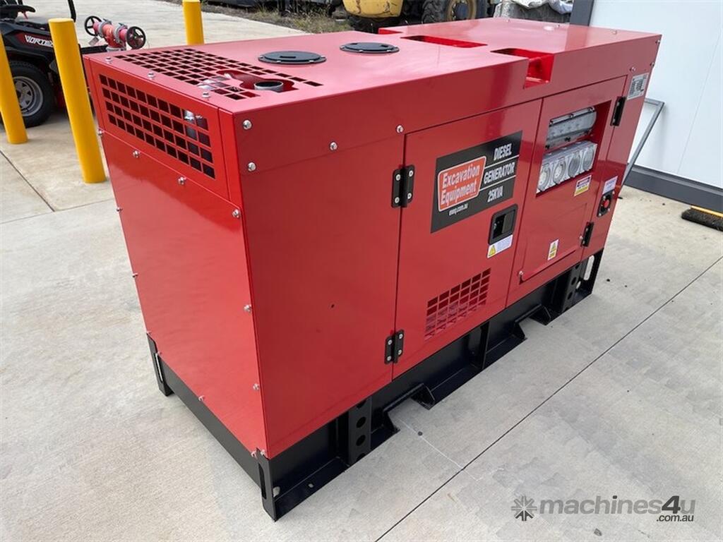 2025 EXEQ 25KVA SILENCED DIESEL GENERATOR. SINGLE PHASE ONLY, E-STOP, BATTERY ISOLATER, FORK POCKETS, LIFTING POINTS, APPROX SHIPPING DIMENSIONS: 1950mm L x 740mm W x 1200mm H. APPROX WEIGHT: 810KGS. THESE WILL BE DELIVERED TO OUR YARD ON FRIDAY 27TH FEBRUARY, PICK ON OR AFTER THAT DAY. LOCATION: HALFERTY STREET, EMERALD, QLD 4720. ENQUIRIES: MATT BEARD ON OR MATTEMERALDAUCTIONCENTRE