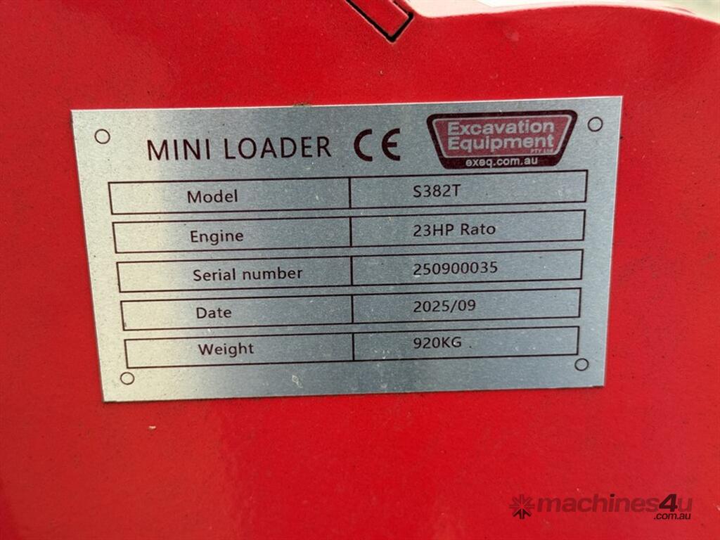 2025 EXEQ S382T MINI SKID STEER LOADER, S/N: , 44 HOURS SHOWING. LOCATION: HALFERTY STREET, EMERALD, QLD 4720. INSPECTIONS & COLLECTIONS: MONDAY TO FRIDAY, 8AM TO 4PM. ENQUIRIES: MATT BEARD ON .