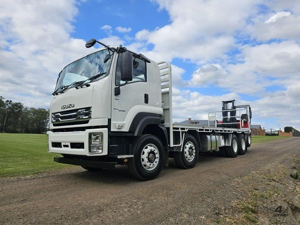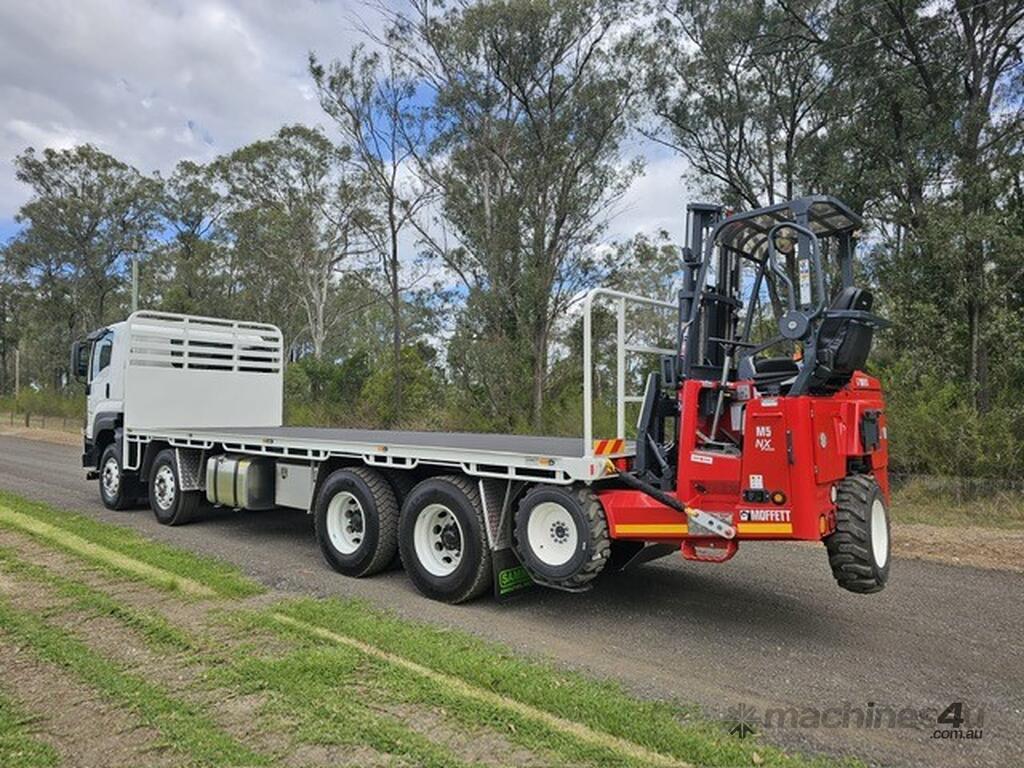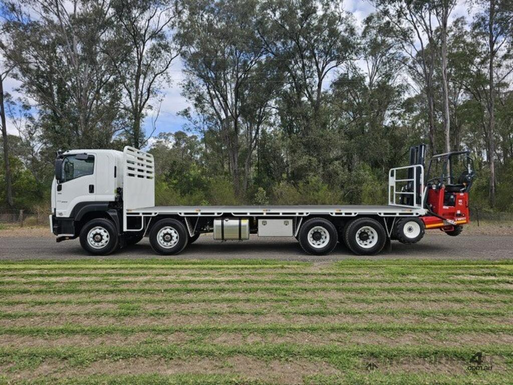 New Isuzu FYJ 300-350 Auto, (None DPF / AdBlue) 8x4 with diff lock, airbag suspension, 6 years Australia wide warranty, Sammut H/D tray, LED lights, 5mm floor, toolbox, removable rear gate, fitted with a new 2024 Moffett M5, extra reach, 3wd, diff lock, comes complete with engineers cert. POA