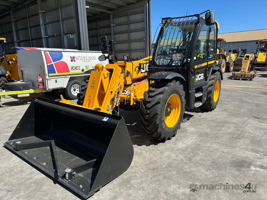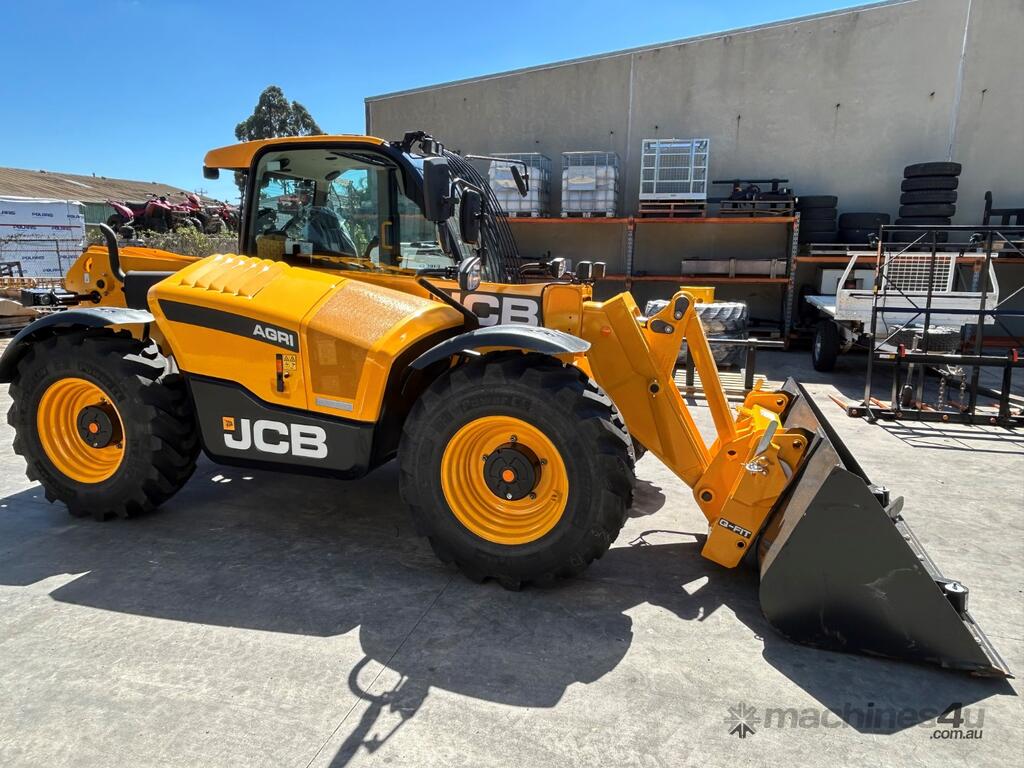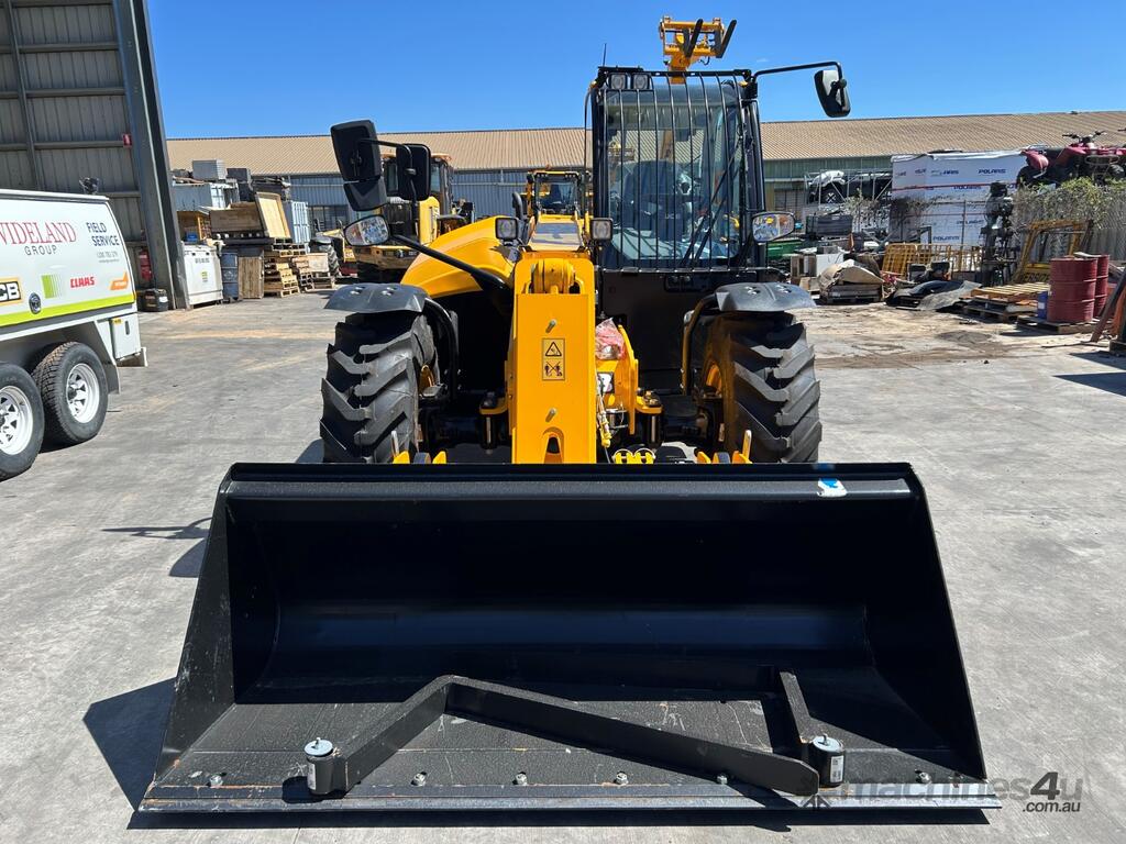 JCB 532-70 AGRI Farm Special Telehandler with the following specs, JCB Dieselmax 81kw/109hp 4 Cylinder 4.4ltr Turbocharged Engine, Torque 516Nm 1500rpm, No DPF No DEF, Variable Speed Auto Reverse Cooling Fan, JCB 40kph 4-speed Powershift Transmission, Torque Lock in 4th gear, 2/4WD Disconnect, Tyres - Michelin 400/80-24, Fully Proportional Vari-Flow Piston Pump 140LPM, Single Lever Joystick, Auto SRS Smooth Ride System, 1 x Double Acting Auxiliary, Adjustable Constant Flow Control, Bucket Control System, Q-Fit Carriage with Electrohydraulic Pin Lock, Battery Isolator, Bluetooth Radio, 7 x Halogen Work Lights, Deluxe Cab with Airconditioning, Heated Air Suspension Seat with Mounted Joystick on Armrest, Load Control System - Load Moment Indicator, Front Screen Guard, Rotating Beacon, Reverse Alarm, Livelink Telematic System, Max Lift Capacity 3000kg 600mm Load Centres, Max Lift Height 7m Comes with 1m cubed GP Bucket, Floating Pallet Forks, UHF, Seat Cover and Window Tint.