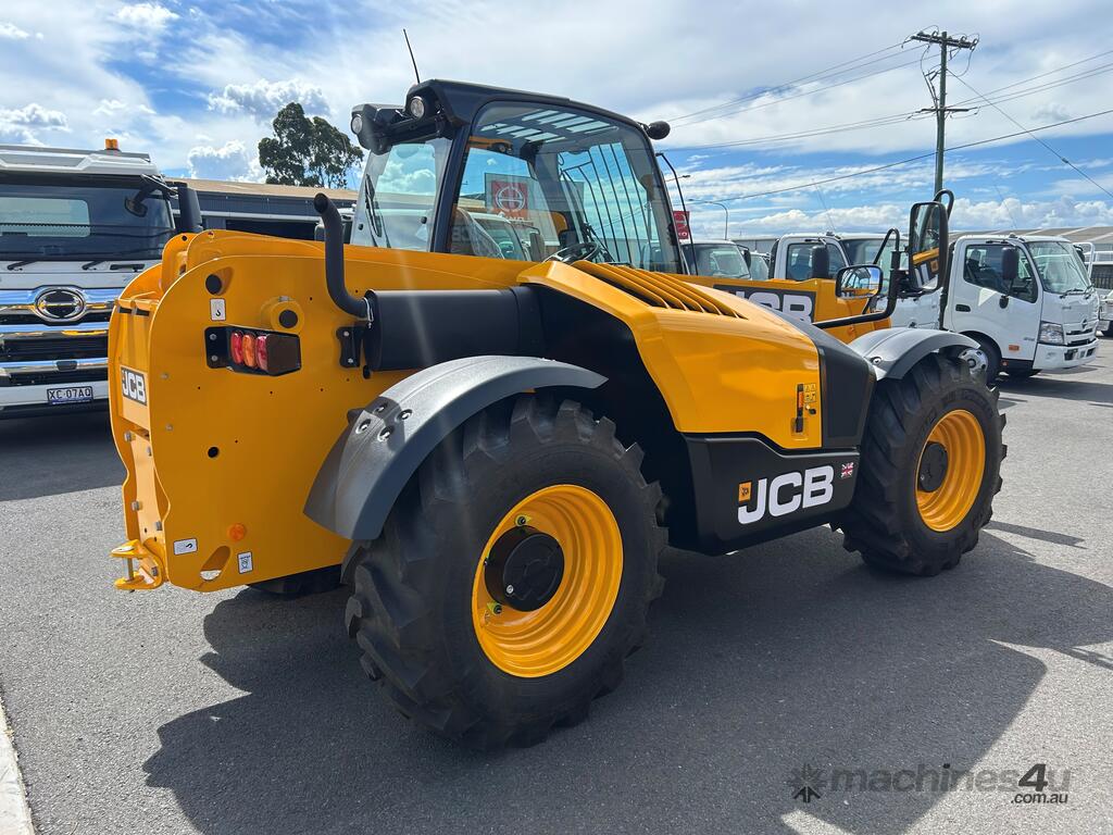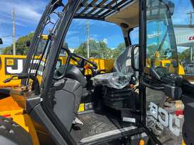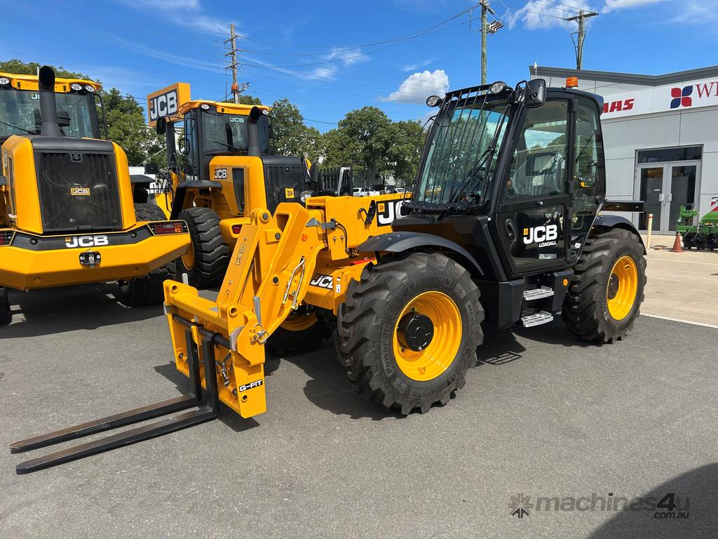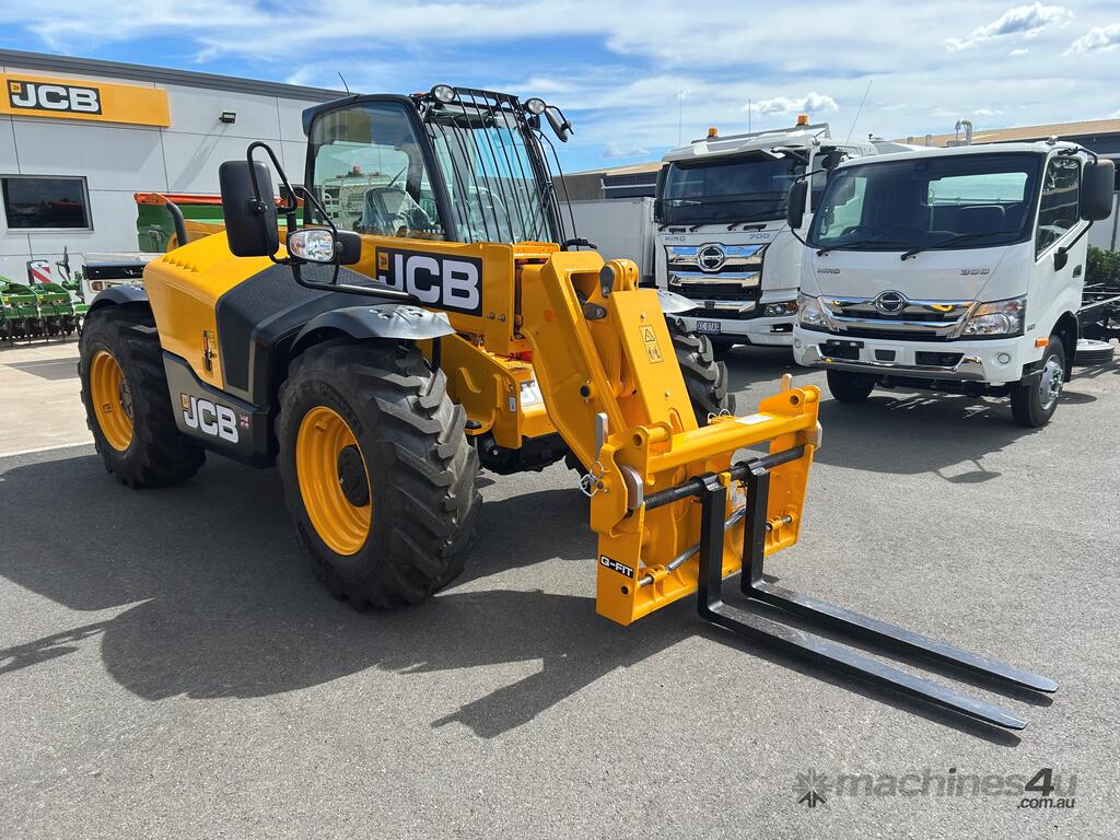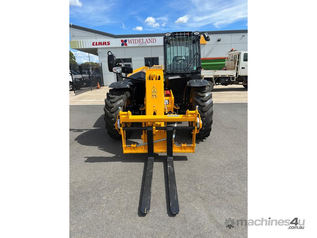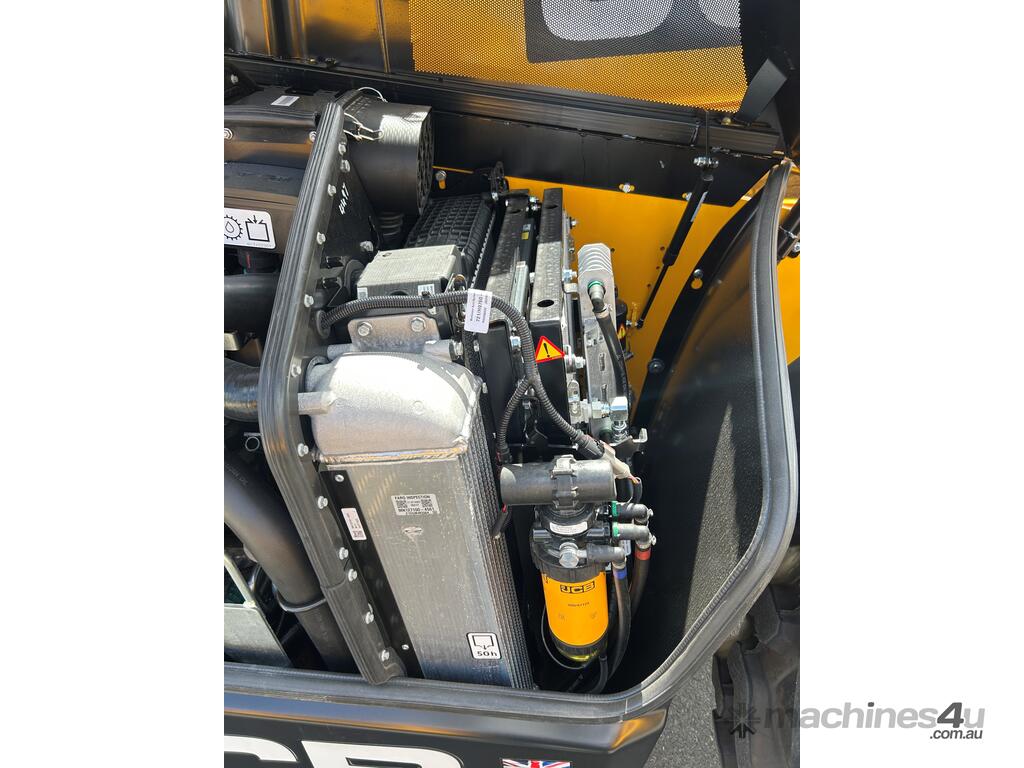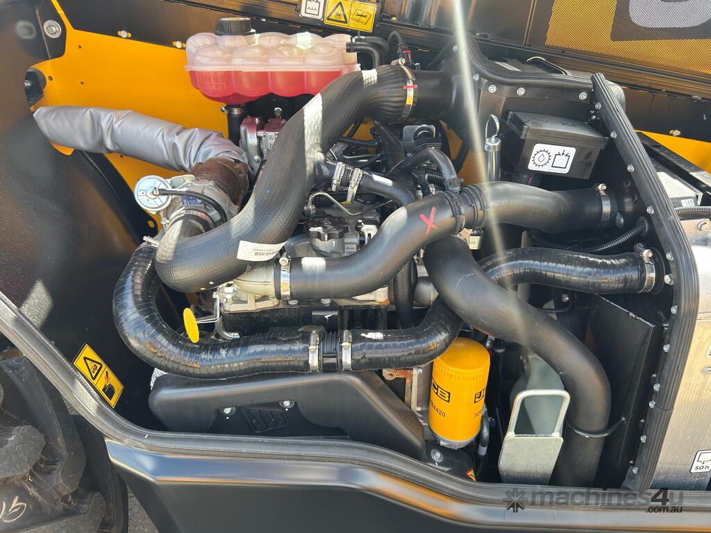 55kW (74hp) 2200rpm, Torque 440Nm 1300rpm, 4.4lt 4-cylinder JCB ECOMAX Tier4F (No DPF No DEF), High Capacity Cooling Pack and Hydraulically Driven Cooling Fan, Cyclonic Action Air Cleaner with Two Stage Filtration. 500hr Service Interval. Driveline 29kph JCB Powershift Transmission (4-speed) with Torque Converter, Permanent 4WD, JCB Epicyclic Hub Reduction Drive/Steer Axles with Max-Trac Torque Proportioning Differentials. Wheels - Michelin 400/80-24 Power Control 162A8, Wheel Nut Indicators. Hydraulics 140lpm Vari-Flow Piston Pump. Adaptive Load Control that provides Proportional Speed Management of Load Motion and Soft Stop. Single Lever Joystick, Electro Servo with Full Proportional Control for Smooth and Accurate Operation of all Boom Functions. Double Acting Auxiliary with Proportional, Adjustable Flow and Motor Function. Hose Burst Check Valves on the Boom and Crowd Cylinders. Chassis One-Piece Fully Welded Chassis Maximises Strength and Minimises Weight for Maximum Structural Rigidity, Low Boom Profile and Boom Pivot Position for Optimum All-Round Visibility and Balance, Hydraulically Activated Service Brakes: Self-Adjusting, Oil-Immersed In-Board High Back-Off Multi-Disc Type on Front Axle, Auto Align 3 Mode Steering. Q-Fit Carriage with Manual Pin Lock, 1200mm Floating Forks, 1.0m3 GP Bucket with Bolt on Cutting Edge, 680mm JCB Jib (requires EQSS to be fitted before use). Operator Station Deluxe Cab with Airconditioning, Black Roof Moulding, Tilt Steering Column, Suspension Seat, Seatbelt, Battery Isolator, Road Lights, 4 x Halogen Work Lights (2 x Front Cab, 2 x Rear Cab), Front Screen Guard, Rotating Beacon, Reverse Alarm, Radio Ready, Livelink Telematic System, Mirrors, Conforms to ROPS ISO 3471 & FOPS ISO 3449. Load Control System - Load Moment Indicator, AS10896.1 Compliant. Operators Manual.