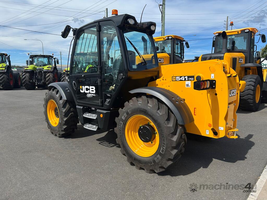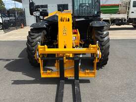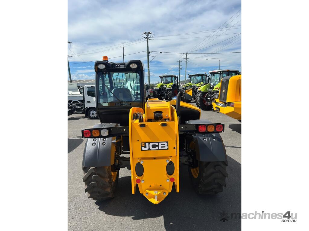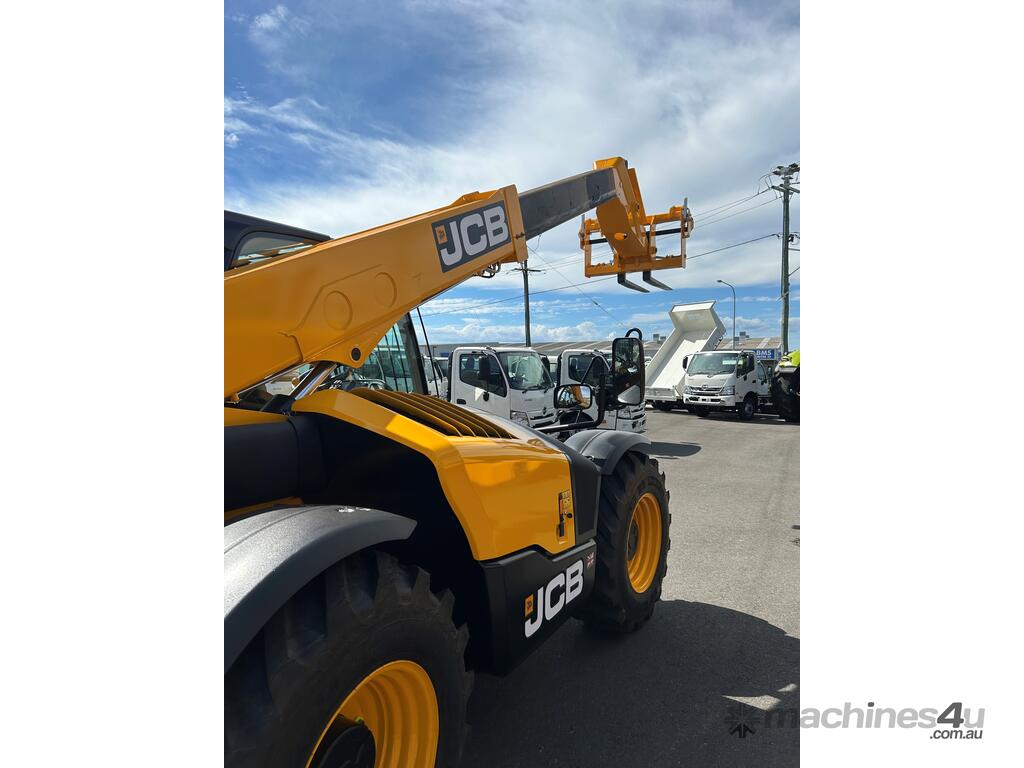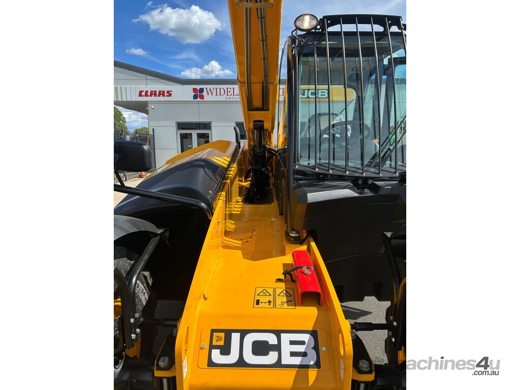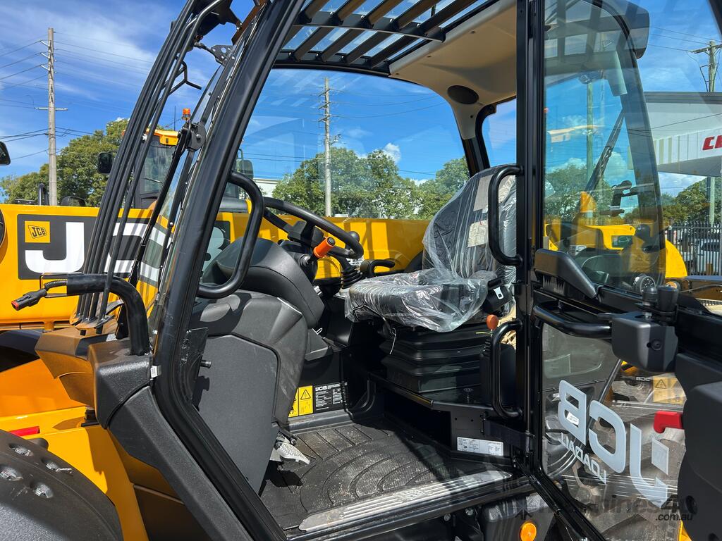 55kW (74hp) 2200rpm, Torque 440Nm 1300rpm, 4.4lt 4-cylinder JCB ECOMAX Tier4F (No DPF No DEF), High Capacity Cooling Pack and Hydraulically Driven Cooling Fan, Cyclonic Action Air Cleaner with Two Stage Filtration. 500hr Service Interval. Driveline 29kph JCB Powershift Transmission (4-speed) with Torque Converter, Permanent 4WD, JCB Epicyclic Hub Reduction Drive/Steer Axles with Max-Trac Torque Proportioning Differentials. Wheels - Michelin 400/80-24 Power Control 162A8, Wheel Nut Indicators. Hydraulics 140lpm Vari-Flow Piston Pump. Adaptive Load Control that provides Proportional Speed Management of Load Motion and Soft Stop. Single Lever Joystick, Electro Servo with Full Proportional Control for Smooth and Accurate Operation of all Boom Functions. Double Acting Auxiliary with Proportional, Adjustable Flow and Motor Function. Hose Burst Check Valves on the Boom and Crowd Cylinders. Chassis One-Piece Fully Welded Chassis Maximises Strength and Minimises Weight for Maximum Structural Rigidity, Low Boom Profile and Boom Pivot Position for Optimum All-Round Visibility and Balance, Hydraulically Activated Service Brakes: Self-Adjusting, Oil-Immersed In-Board High Back-Off Multi-Disc Type on Front Axle, Auto Align 3 Mode Steering. Q-Fit Carriage with Manual Pin Lock, 1200mm Floating Forks, 1.0m3 GP Bucket with Bolt on Cutting Edge, 680mm JCB Jib (requires EQSS to be fitted before use). Operator Station Deluxe Cab with Airconditioning, Black Roof Moulding, Tilt Steering Column, Suspension Seat, Seatbelt, Battery Isolator, Road Lights, 4 x Halogen Work Lights (2 x Front Cab, 2 x Rear Cab), Front Screen Guard, Rotating Beacon, Reverse Alarm, Radio Ready, Livelink Telematic System, Mirrors, Conforms to ROPS ISO 3471 & FOPS ISO 3449. Load Control System - Load Moment Indicator, AS10896.1 Compliant. Operators Manual.