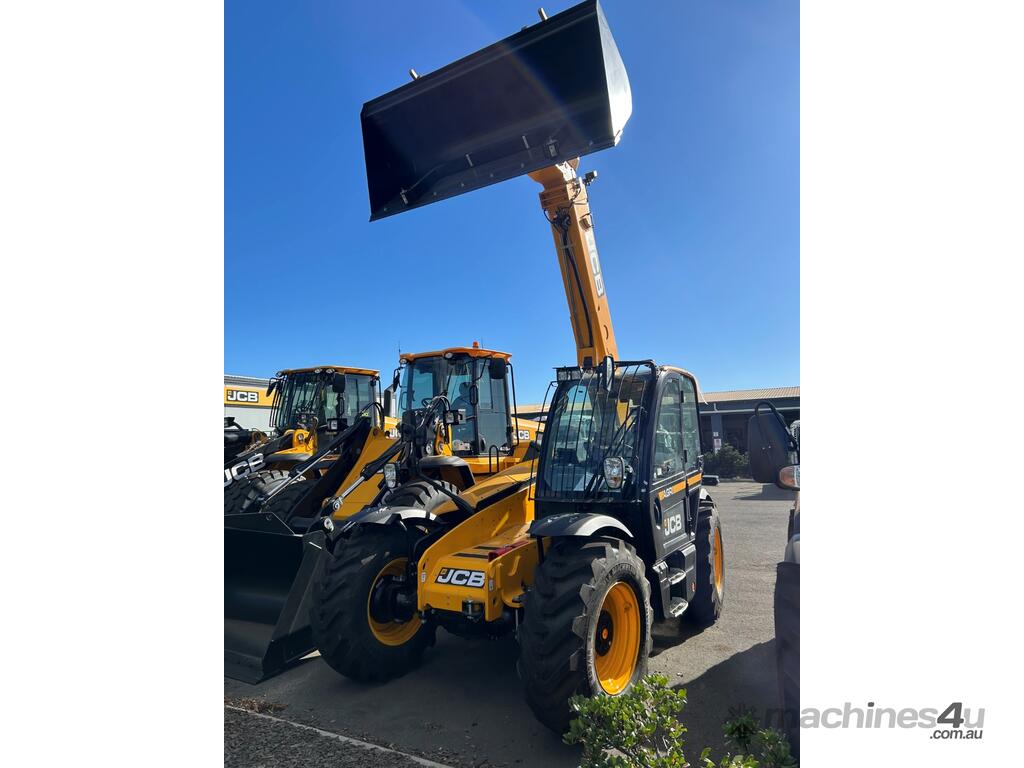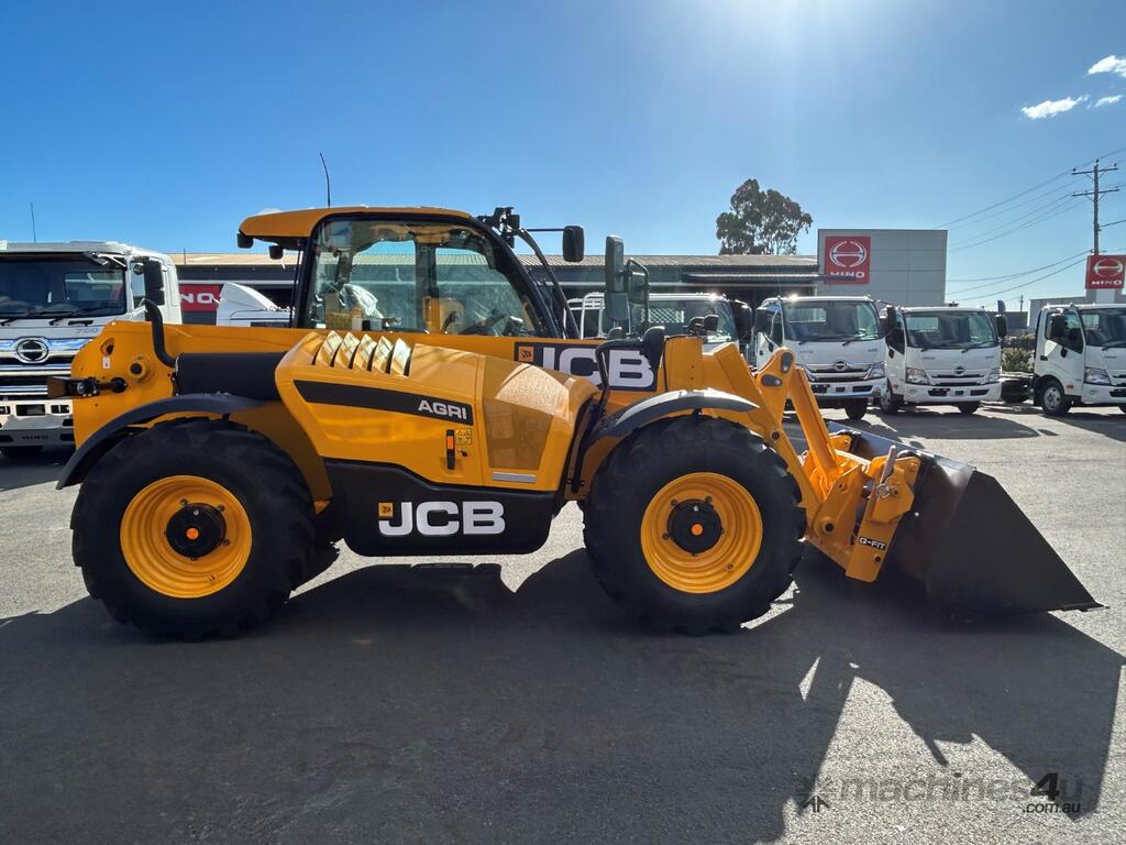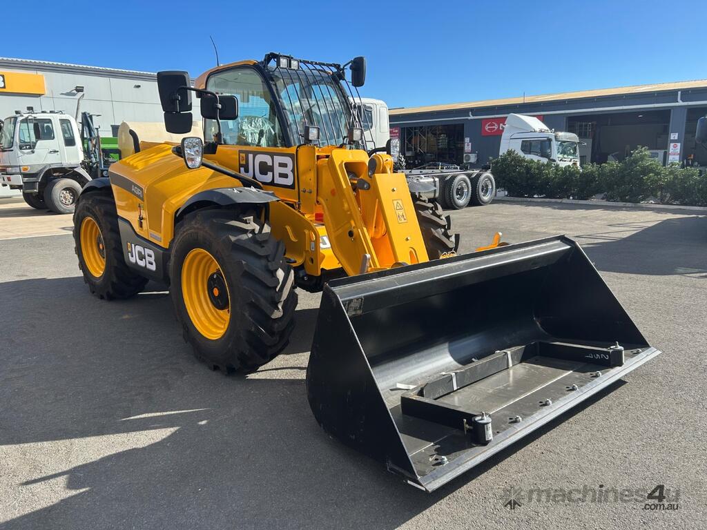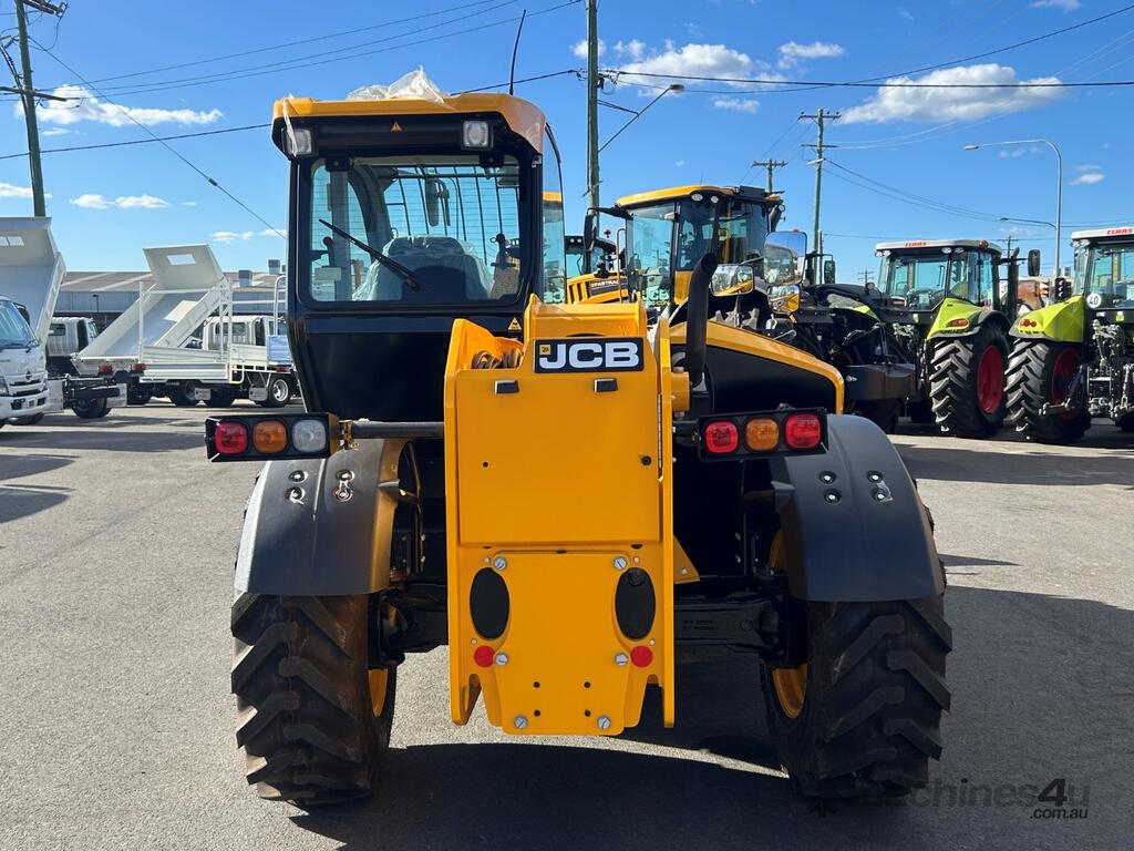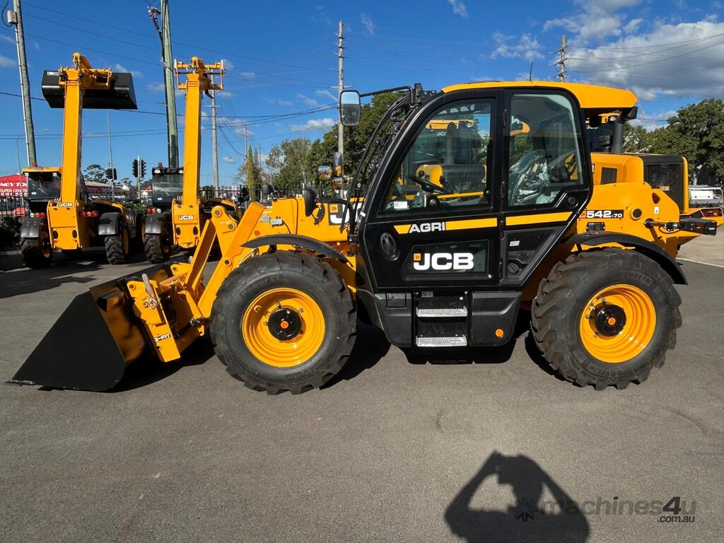 JCB 542-70 AGRI Farm Special Telehandler with the following specs, JCB Dieselmax 81kw/109hp 4 Cylinder 4.4ltr Turbocharged Engine, Torque 516Nm 1500rpm, No DPF No DEF, Variable Speed Auto Reverse Cooling Fan, JCB 40kph 4-speed Powershift Transmission, Torque Lock in 4th gear, 2/4WD Disconnect, Tyres - Michelin 400/80-24, Fully Proportional Vari-Flow Piston Pump 140LPM, Single Lever Joystick, Auto SRS Smooth Ride System, 1 x Double Acting Auxiliary, Adjustable Constant Flow Control, Bucket Control System, Q-Fit Carriage with Electrohydraulic Pin Lock, Battery Isolator, Bluetooth Radio, 7 x Halogen Work Lights, Deluxe Cab with Airconditioning, Heated Air Suspension Seat with Mounted Joystick on Armrest, Load Control System - Load Moment Indicator, Front Screen Guard, Rotating Beacon, Reverse Alarm, Livelink Telematic System, Max Lift Capacity 4000kg 600mm Load Centres, Max Lift Height 7m Comes with 1m cubed GP Bucket, Floating Pallet Forks, UHF, Seat Cover and Window Tint.