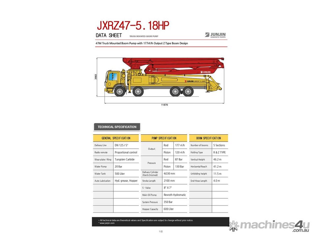 Boom Pump, Concrete Pump, Concrete Equipment, JunJin, , VOLVO, SCANIA, DAF 47m