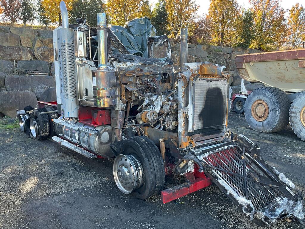 CP: CIRCA 2025,Kenworth,T909,6x4 Prime Mover,AirBag Rear,Odometer not visible,Hourmeter not visible,Colour: Burnt,Unregistered,VIN: 6F5000000SA491494,Sold with No Plates,WOVR Status: WOVR N/A,Incident Type: Fire