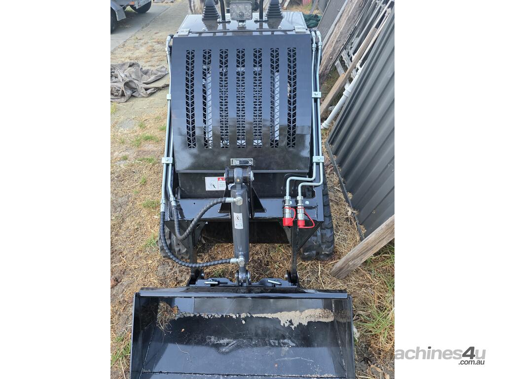 The tracks provide superior grip and stability on various terrains, including soft soil, gravel, and slopes, while also minimising surface damage compared to wheeled machines.