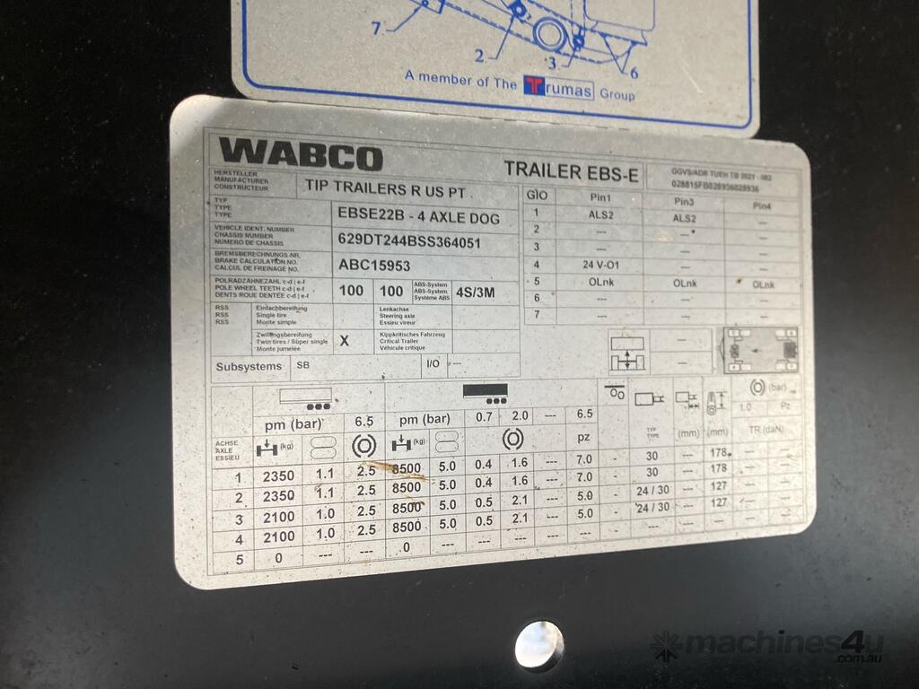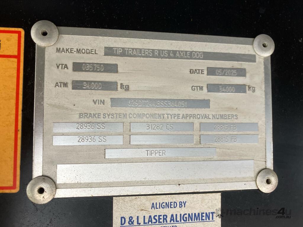 CP: 05/2025,Tip Trailers R Us,Quad Dog Tipping Trailer,Hubometer not visible,Colour: White,Rego. No: NP(YB05HJ), Unregistered,VIN: 629DT244BSS364051,Serial No: Y,Sold with No Plates,WOVR Status: Repairable Write-Off,Incident Type: Impact