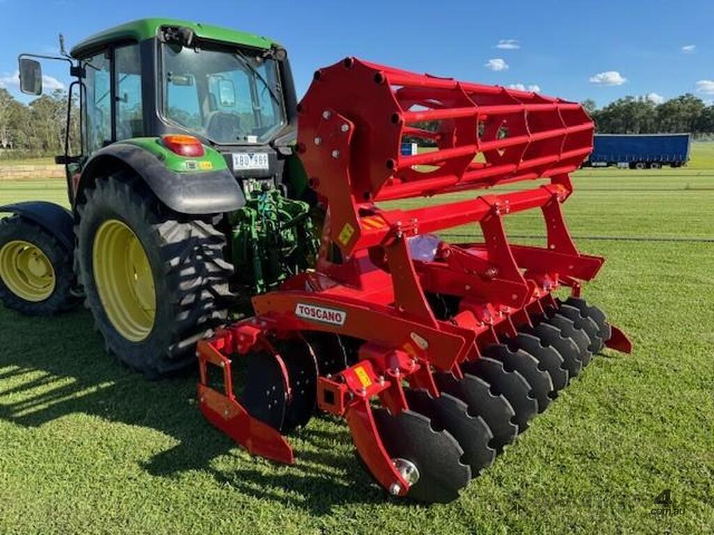 2025 Toscano 20-disc Speed Disc, 3PL, 2.5m width, heavy-duty 56cm discs, heavy-duty maintenance-free sealed bearings, greaseable pivots, hydraulic lift crumble roller for $15,900+GST