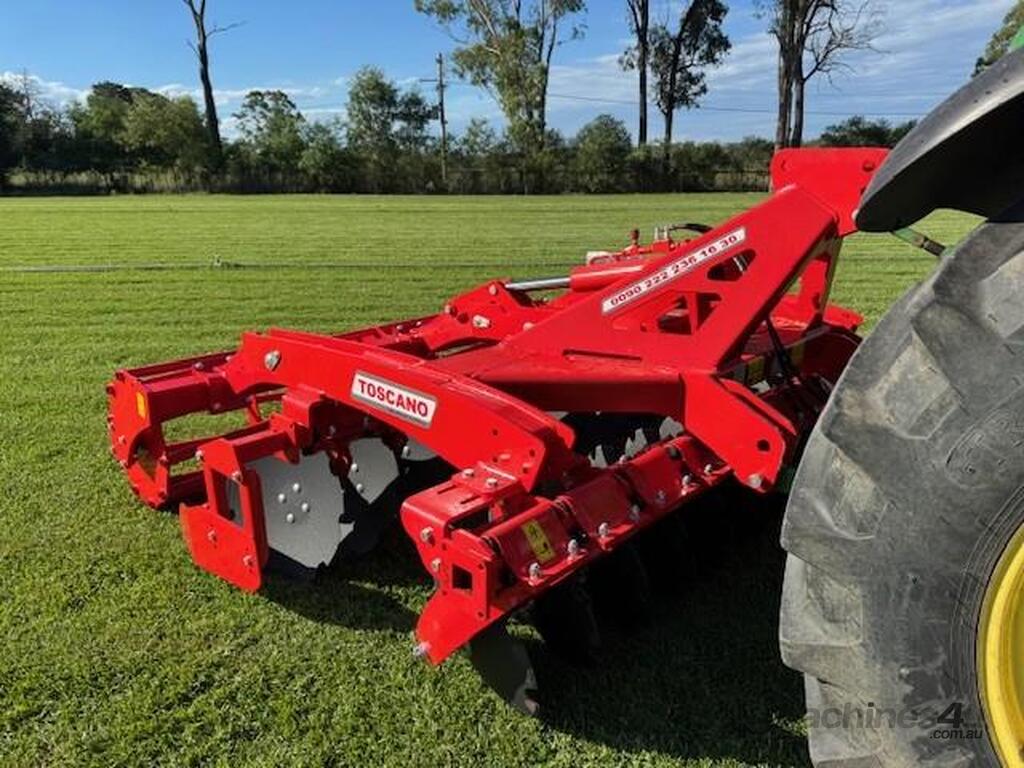 2025 Toscano 20-disc Speed Disc, 3PL, 2.5m width, heavy-duty 56cm discs, heavy-duty maintenance-free sealed bearings, greaseable pivots, hydraulic lift crumble roller for $15,900+GST