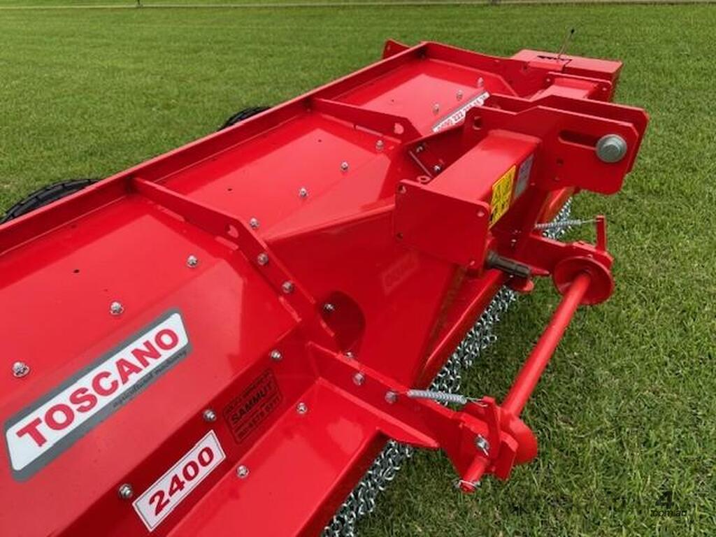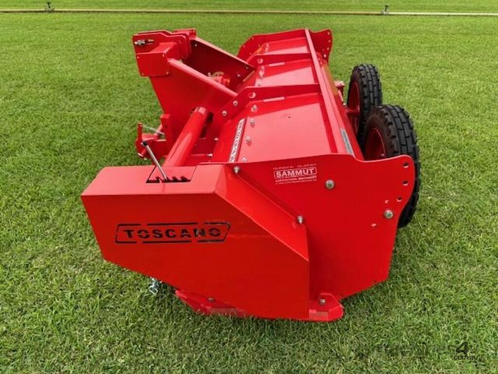2025 Toscano 2400 Pasture Mulcher, heavy-duty construction, 2.4m work width, 750kg, 48x blades, rear adjustable wheels, adjustable rear door, Y-blades, heavy-duty drive system for $10,900+GST