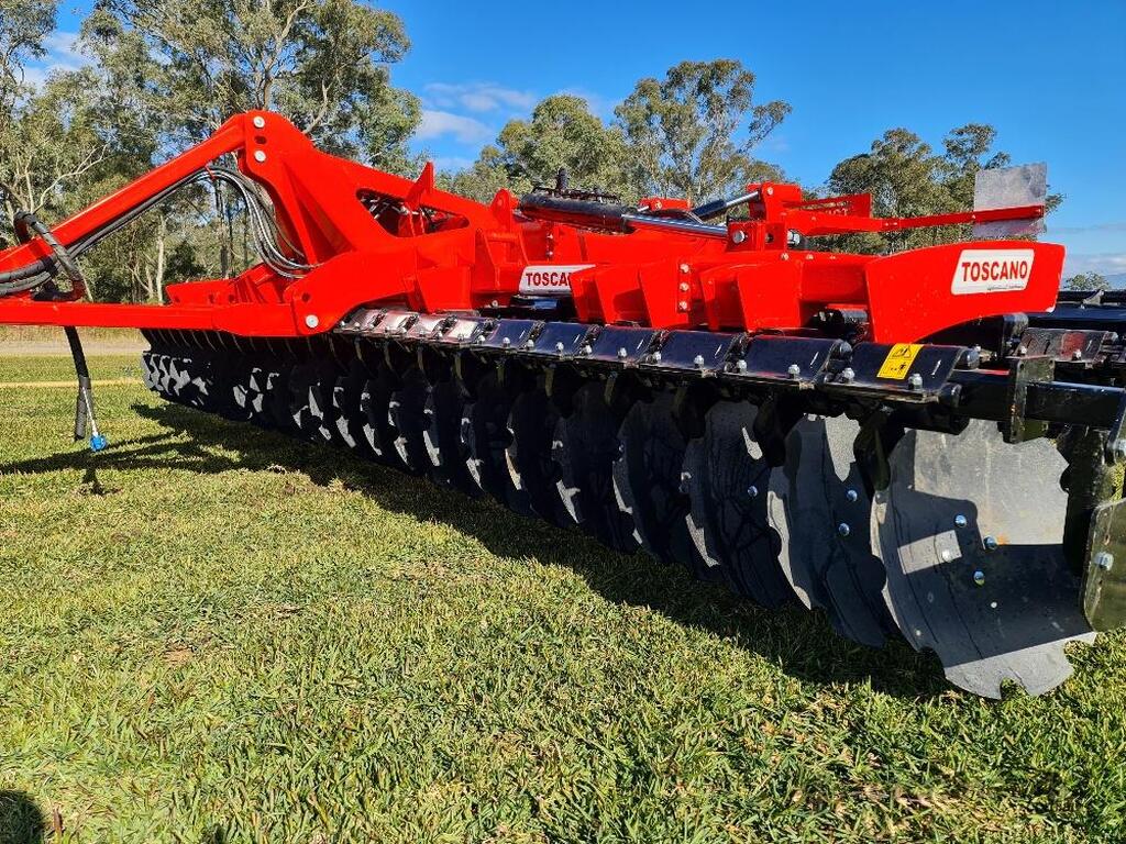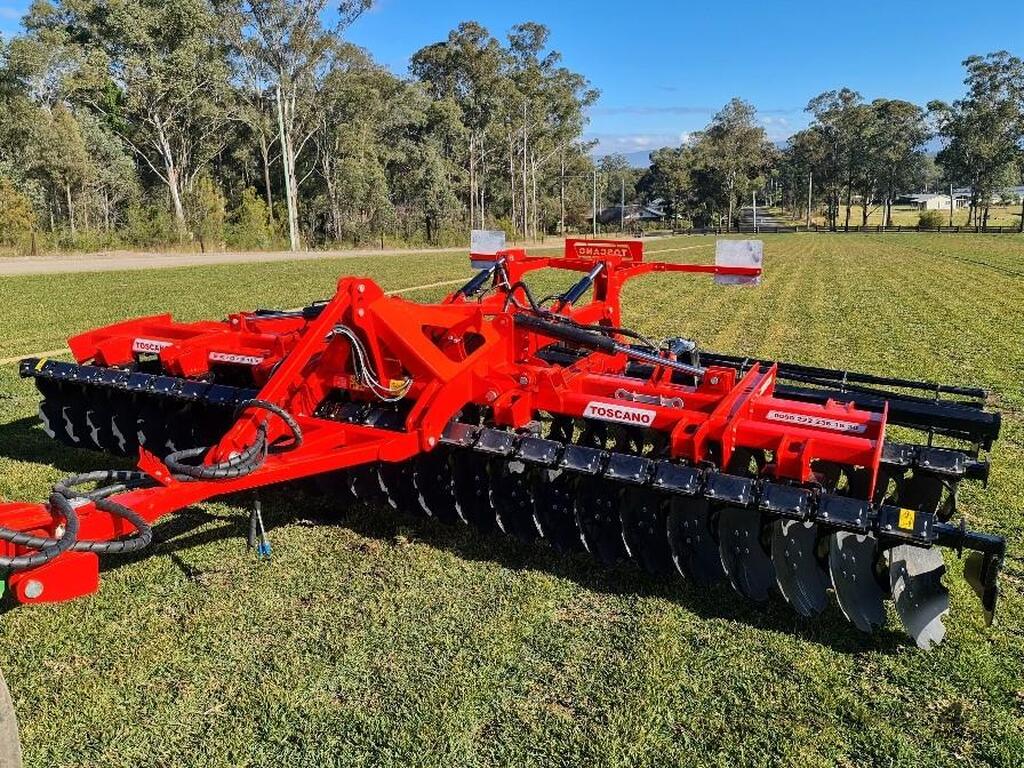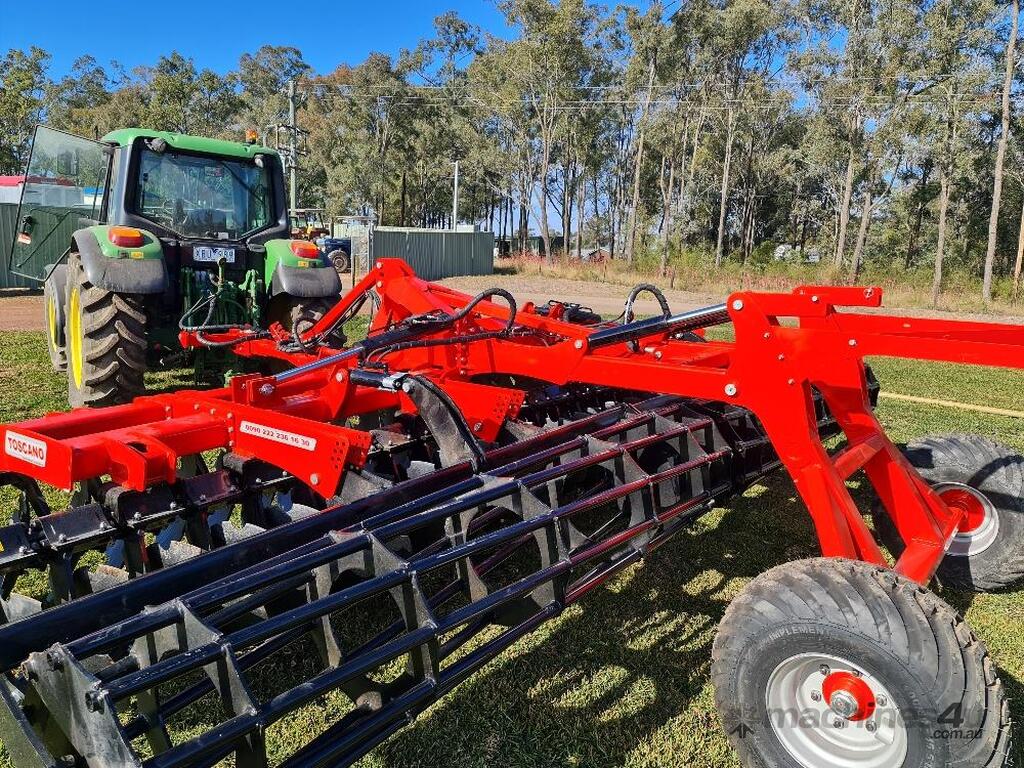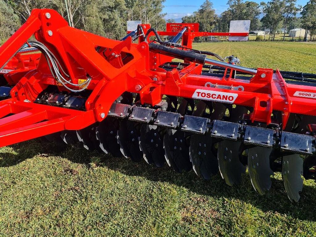 2025 Toscano 6m Speed Disc, heavy duty European built, 56mm x 6mm discs, sealed bearings, independent sprung discs, crumble roller, hardened greaseable pins, 6m cut, 48 plate, 150mm working depth, requires between 180hp to 250hp tractor, folds to 2.9m wide, optional single point tow hitch or bottom link tow hitch for $48,900+GST
