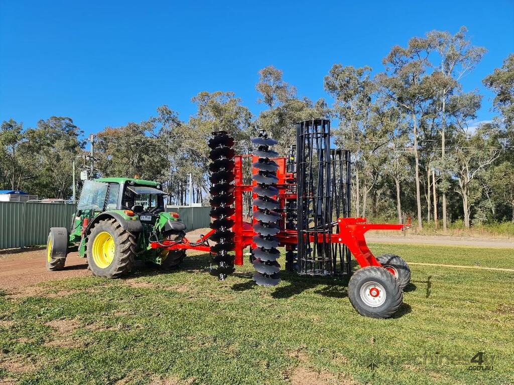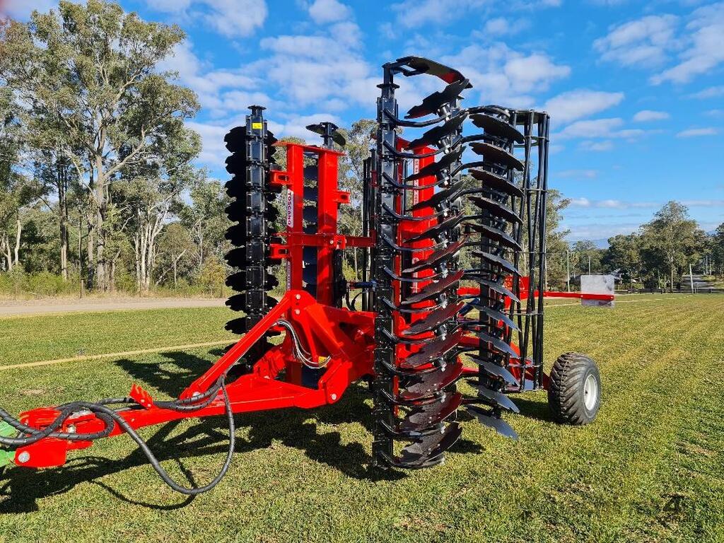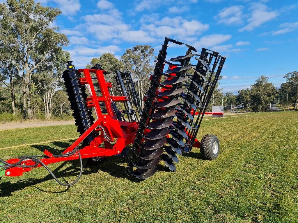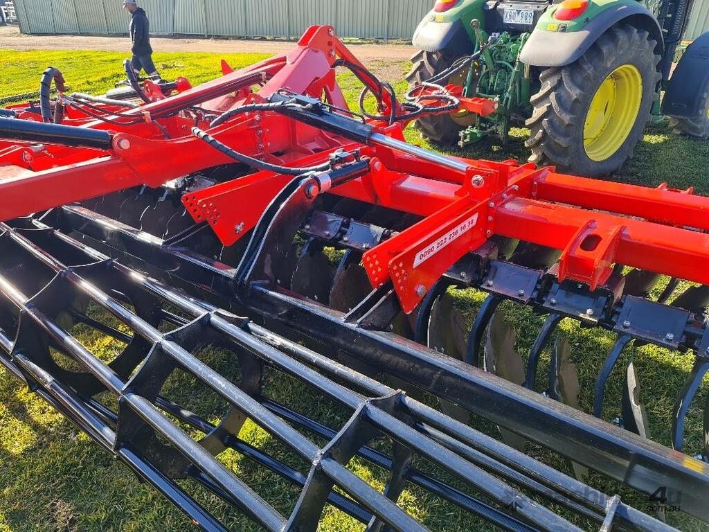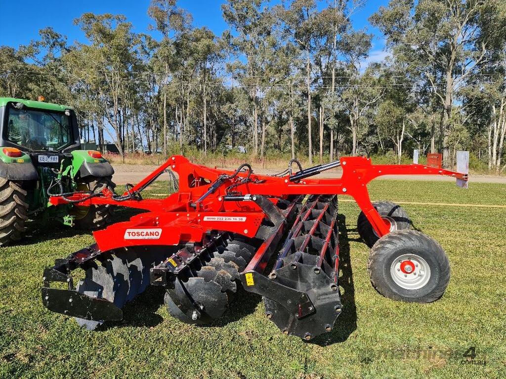 2025 Toscano 6m Speed Disc, heavy duty European built, 56mm x 6mm discs, sealed bearings, independent sprung discs, crumble roller, hardened greaseable pins, 6m cut, 48 plate, 150mm working depth, requires between 180hp to 250hp tractor, folds to 2.9m wide, optional single point tow hitch or bottom link tow hitch for $48,900+GST