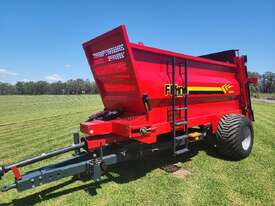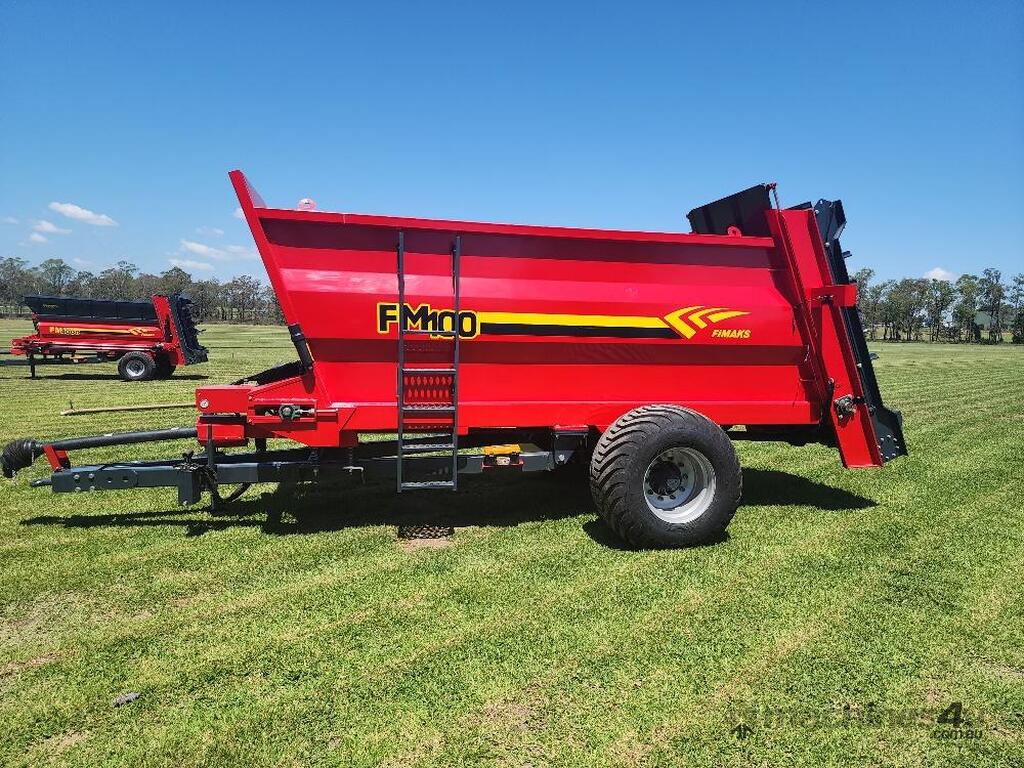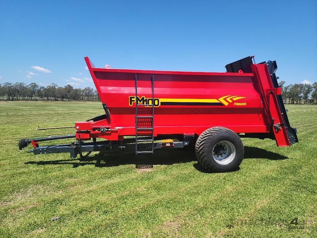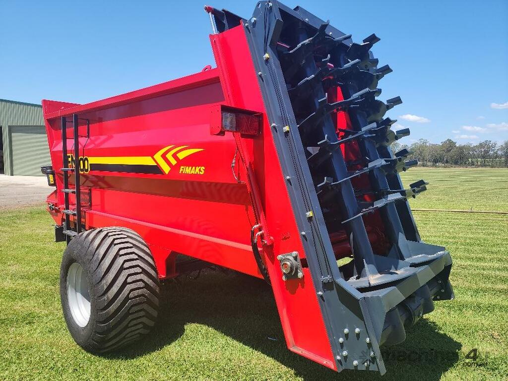 New 2025 Fimaks 10T vertical beaters spreader, 8.5m3 capacity, 3100mm height, 7500mm length, 3000mm width, 4350kg weight, 90hp tractor requirement, hydraulic door, brakes, lights, capable of spreading muck, manure, mulch, soil, sand, clay and much more. 12 months warranty, heavy duty construction.