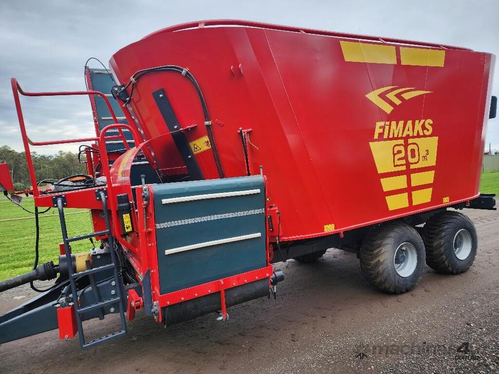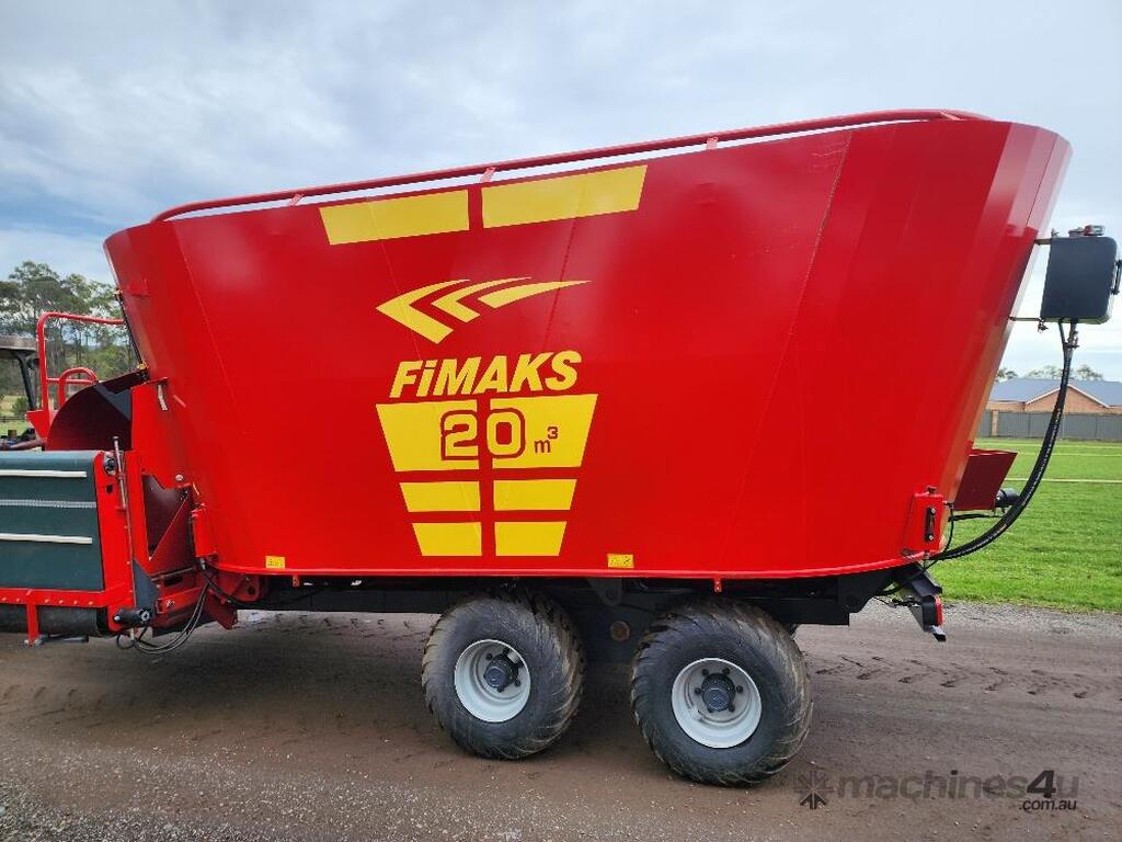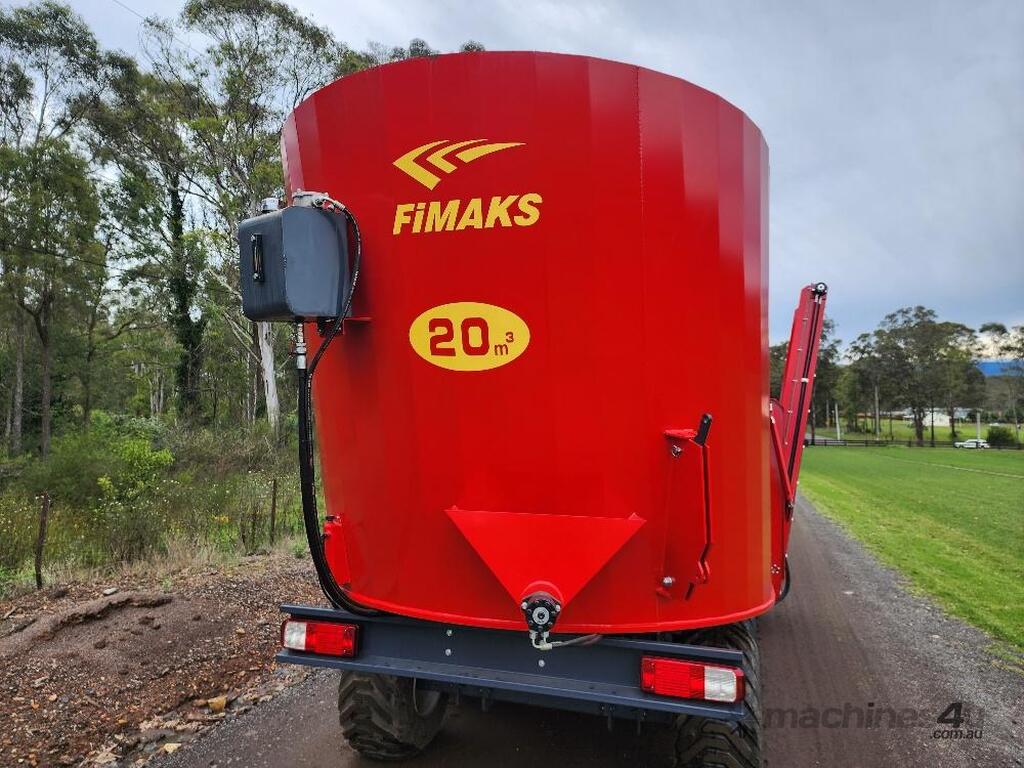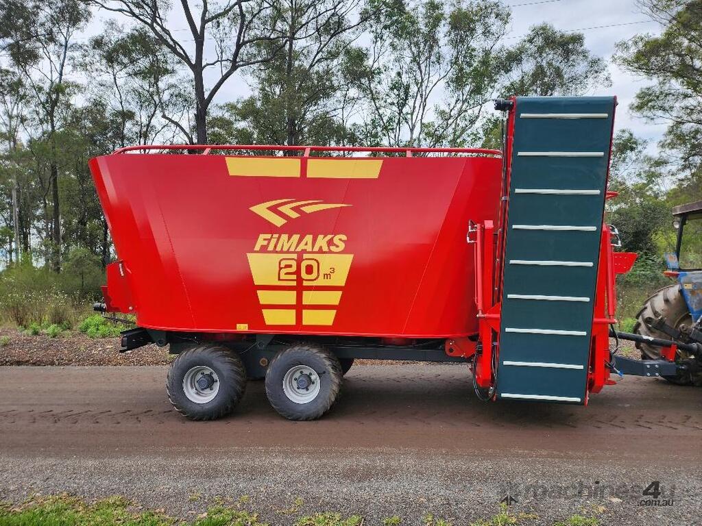 New 2026 Fimaks 20m3 Feed Mixer, dual folding conveyors of 3m and 1m, scales, brakes, dual screw auger, hardened steel floor and sides, heavy duty machine.