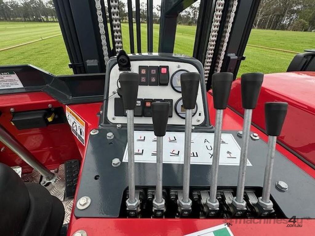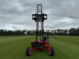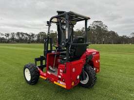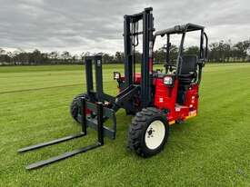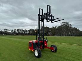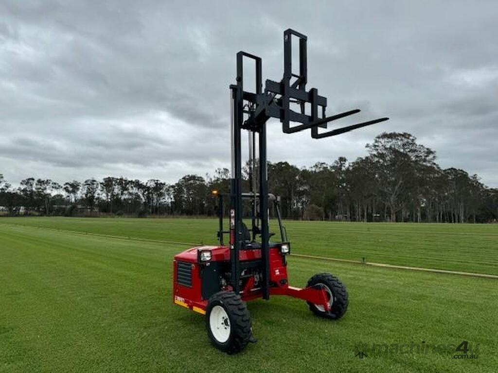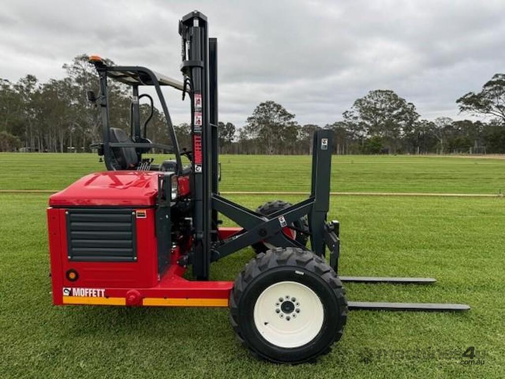 The Moffet M4 has a 2.5T lift capacity, 3wd, diff lock, very short overhang (1195mm), 23x8.5-12 tires, 200mm ground clearance. This machine is ideal for rigid truck combinations, general freight, turf deliveries, beekeepers and much more.