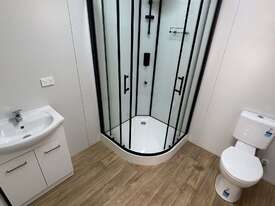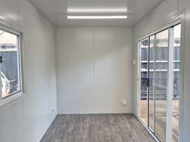 This includes full insulation paired with a 2.5kw aircon to keep your area cool during the summer and warmer during the winter months. One glass sliding door, one sliding window (both lockable) and vinyl flooring are also included alongside 4 x double powerpoints, 2 x LED batton lights and a 15AMP inlet. This conversion layout is completely customisable and we can add extras such as a kitchenette, toilet, bathroom, external paint, additional windows, etc.