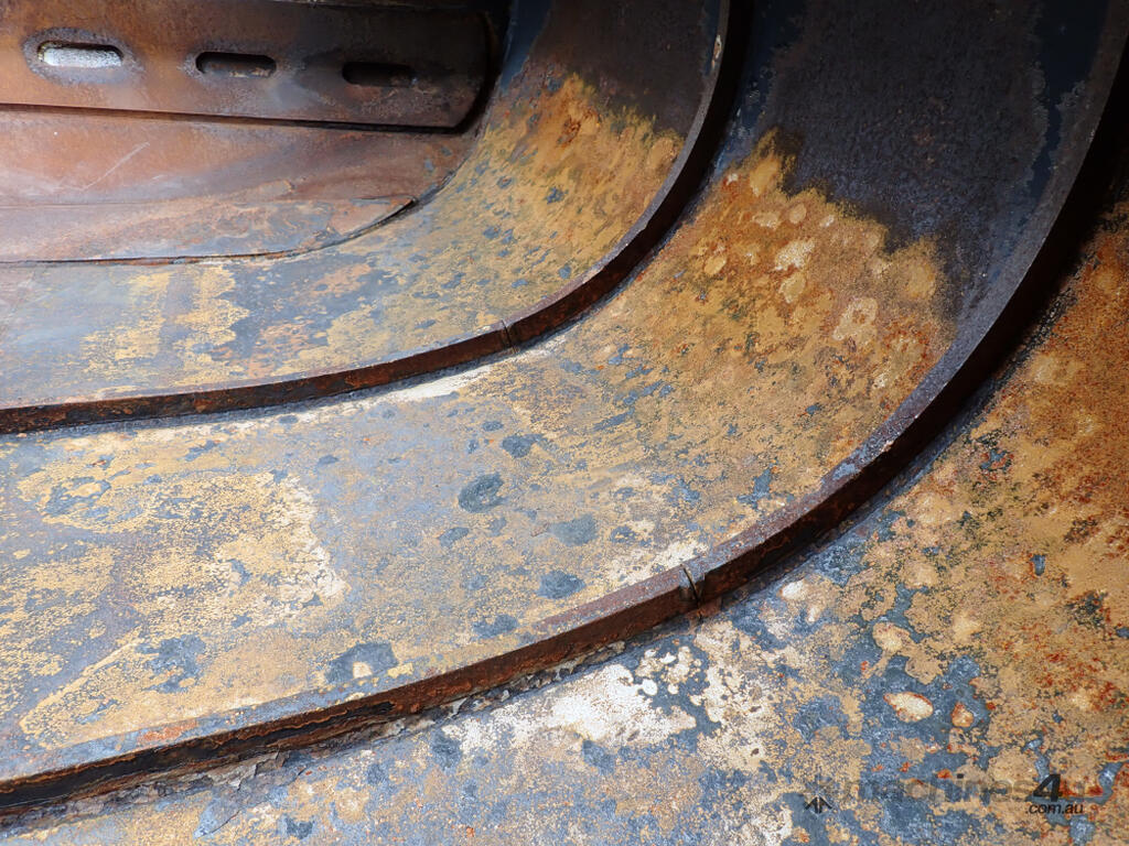 2. However, there are cracks around the welds of the Ear Plates at the highest point of the bucket (see pic# 8), these run about 8-10 inches long, but do not continue all the way to the front or all the way down the back to the bottom. So for light to medium duty work (scooping up uncompacted dirt, sand, mud etc.), the headstock is not likely to fall off anytime soon. But if the cracks are fully ground out with a grinder and re-welded properly (3-5 hours work?), this bucket will be good to go for demanding jobs again.