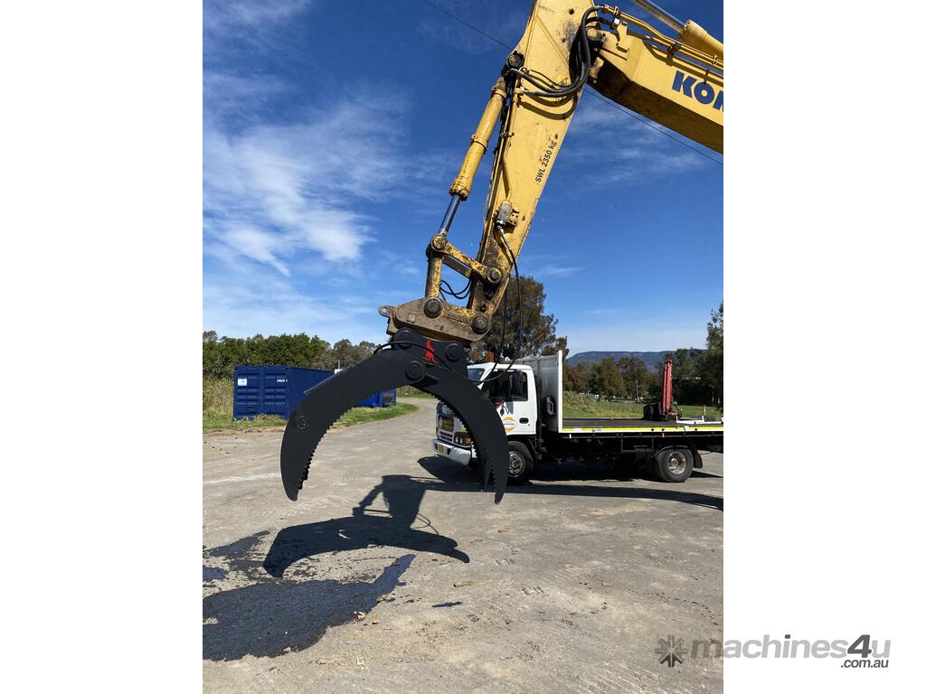 Roo Attachments, Hydraulic Grabs for 24 to 29Ton Excavators are equipped with twin hydraulic cylinders, with other hydraulic grabs in stock to suit from 0.8T to 36T Excavators.