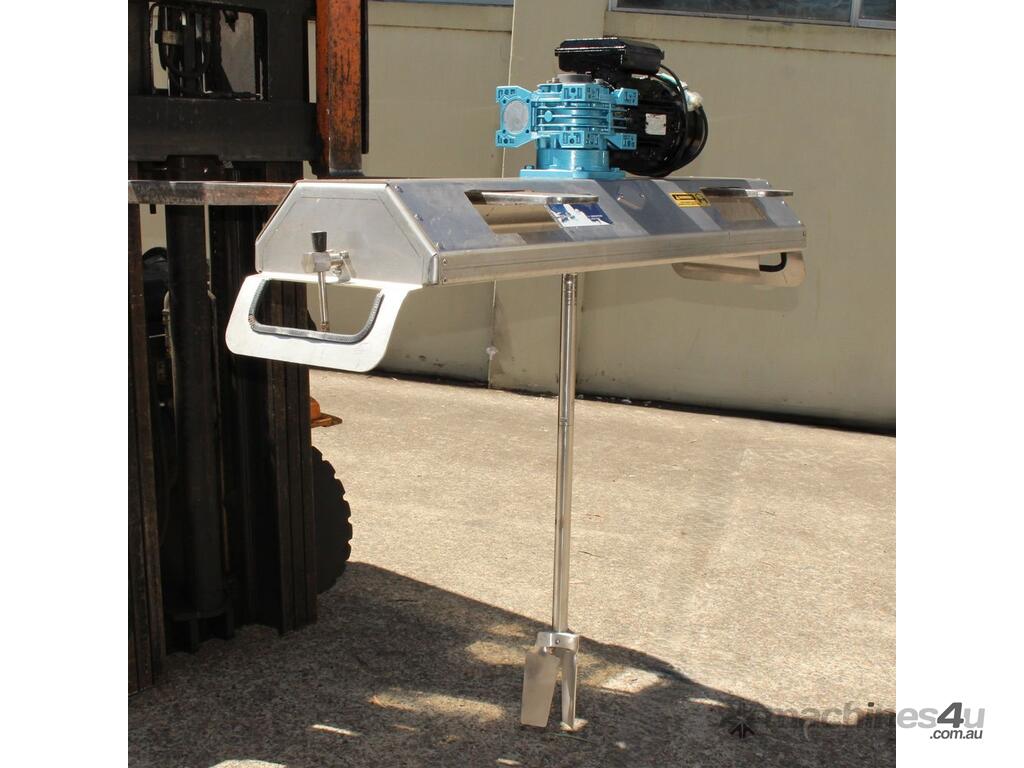 S/S IBC Bridge Mount Mixers, "Mixquip Teralba" stainless steel bridge, mixer driven by single phase 2.2kw 200rpm geared motor, 400mm dia folding impeller