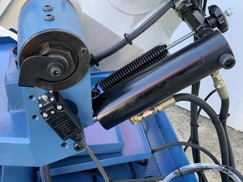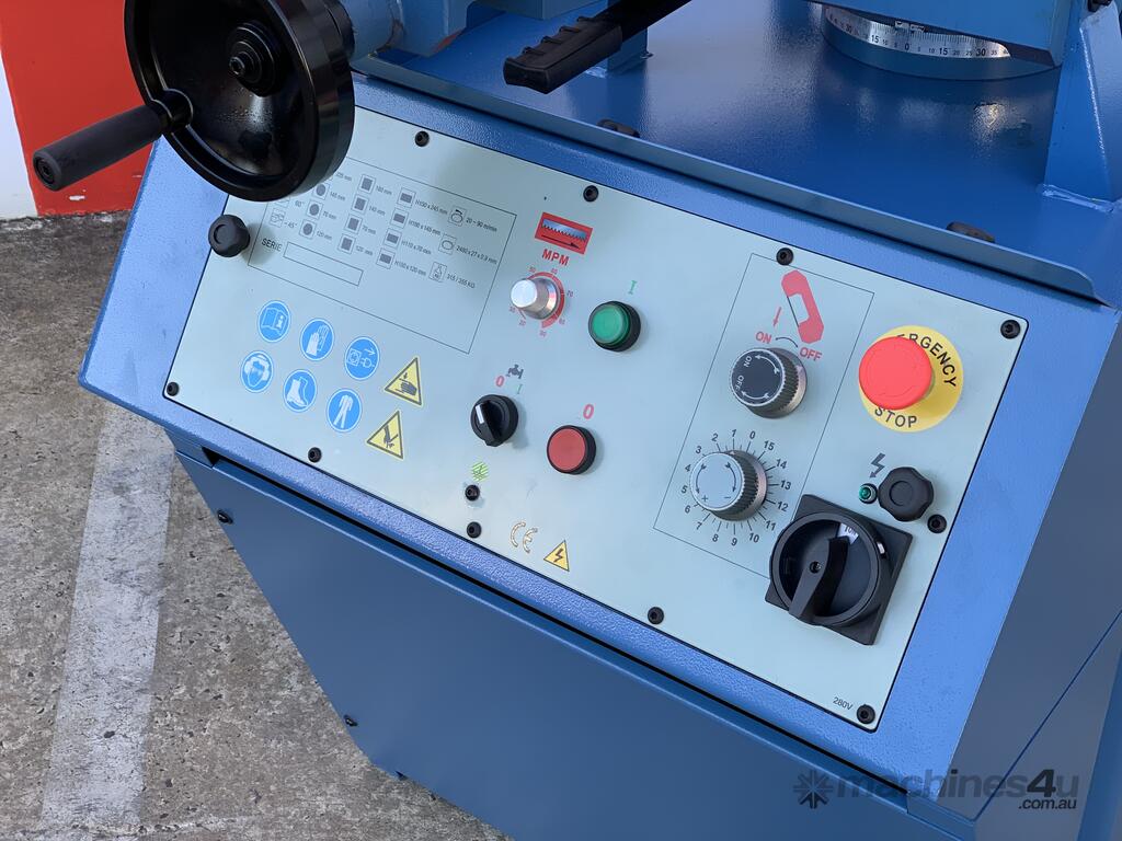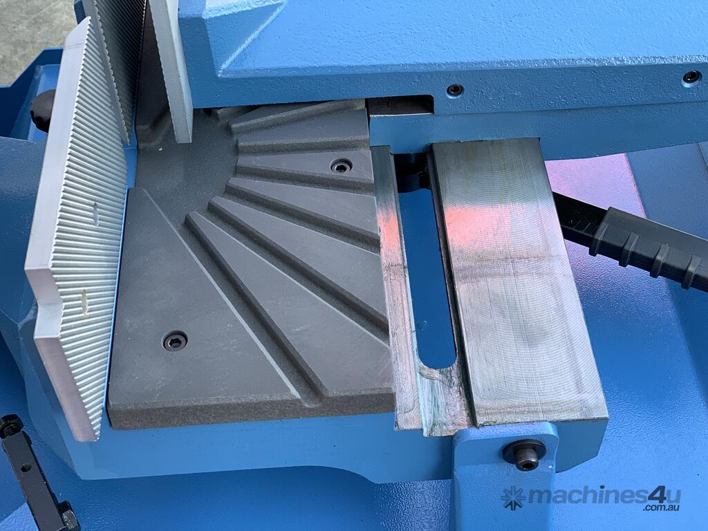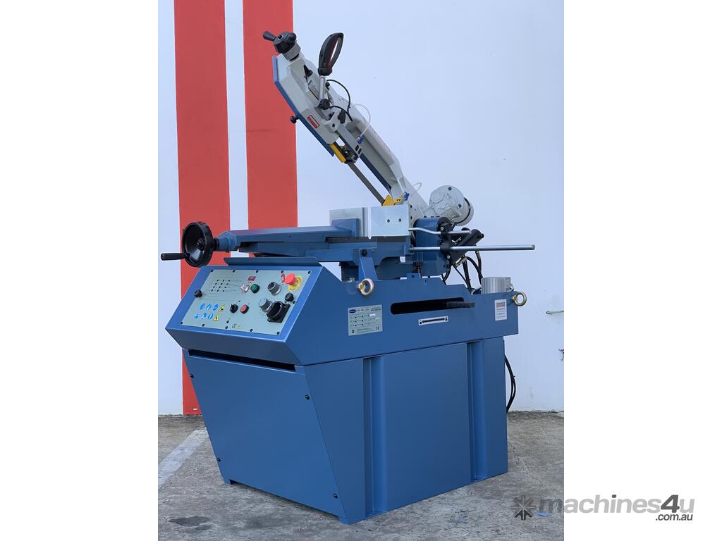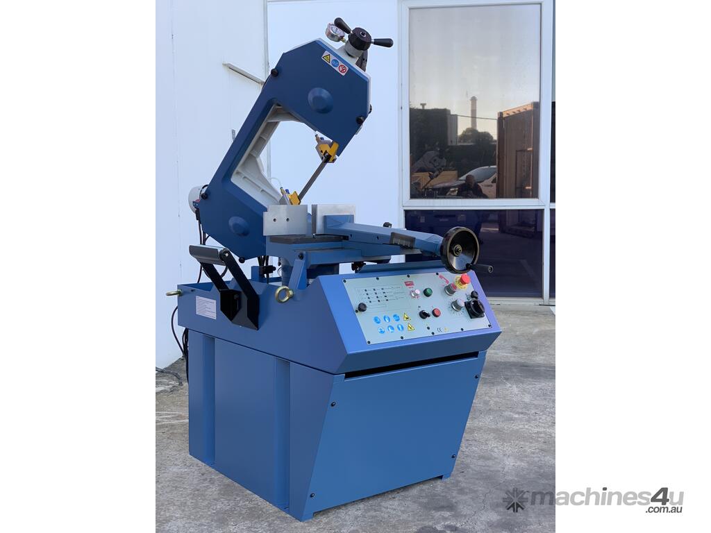 SM-HBS280V - 240Volt or Volt MOdels . Bandsaw Double Mitre. 245mm x 150mm Capacity, 20 ~ 90 Vari Speed, Coolant,Hydraulic Down feed, Trigger Switch, Blade Tension, Integrated Stand, Quick Set Angle & Vice. 240V & V Models in Stock