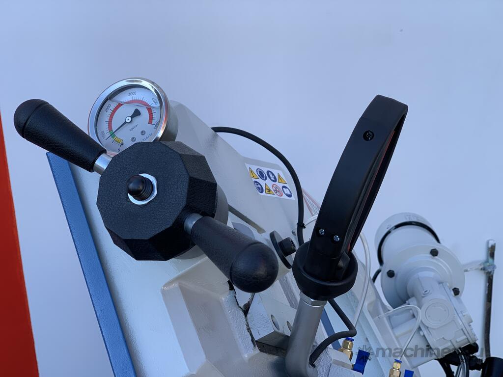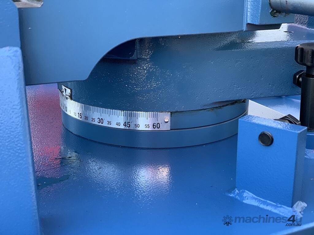 This variable speed double mitre saw is built for accuracy and production! Easy quick action angle set-ups between 0 and 60 degrees means no wasted time between cuts. Lever controlled blade guide locks allow adjustments right up to the work piece for optimum support and the blade guides have fully adjustable ball bearings so you know you're going to get straight cuts. And when you're done, use the quick release lever and stock length stop to get on with the next cut. It's fast and simple to use! We have included other features including carbide blade guides, blade pressure gauge, hydraulic down feed, trigger switch opertion, to set this aside from other base machines.