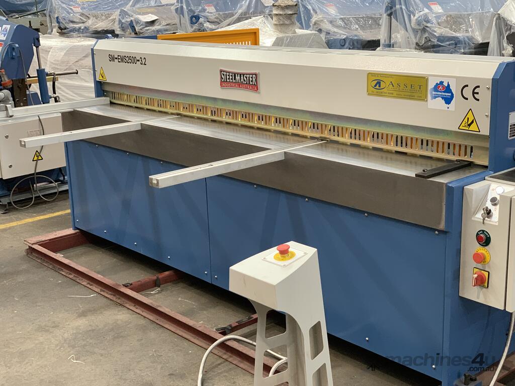- SM-EMS2500-3.2  Power Guillotine. Steelmaster 2500mm x 3.2mm with Manual Quick Adjust Backgauge.