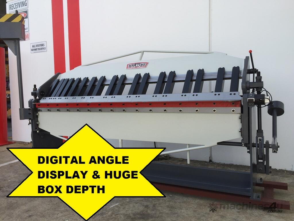 Our heavy duty ASSET Industrial Series Panbrake Folder is the All In One! Massive Box Folding Depth along with Digital Angle Display. Our sheet metal panbrake is a real brute! check out the 1400kg heavy duty steel construction! it's easy to see that it's built for many years of use and abuse. hardened and ground fingers, bending edge, 135° bending range, work stop and radius adjustment.