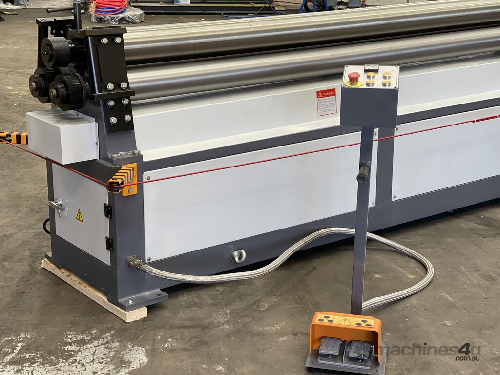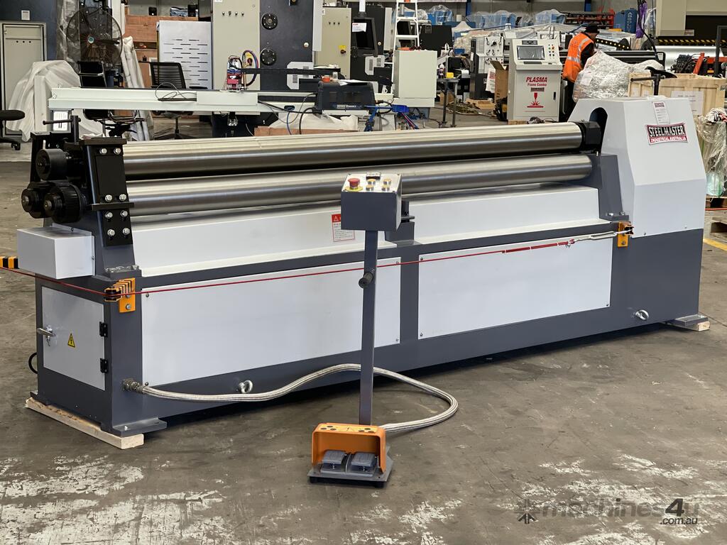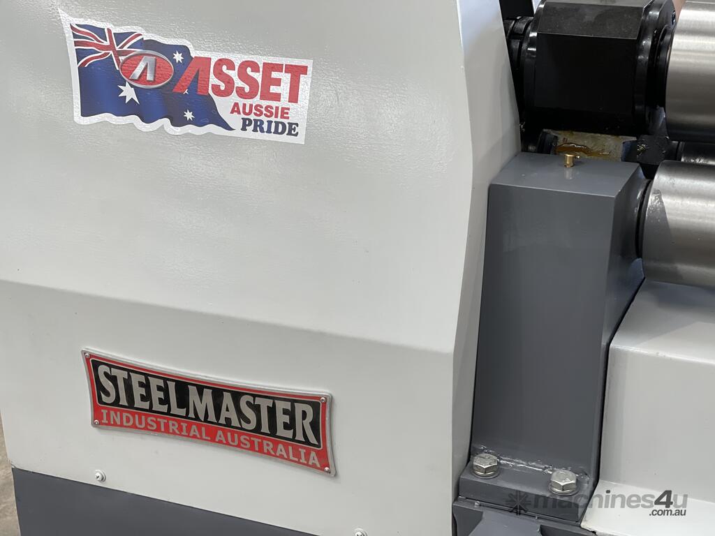 SM-MCR2504. Plate / Curving Rollers. 2500mm x 4mm Capacity. Steelmaster Motorised Operation. Digital Top Roller Display, Swing Out Top Roller & Safety Cable. 2 x Sets Extension Stub Rollers.