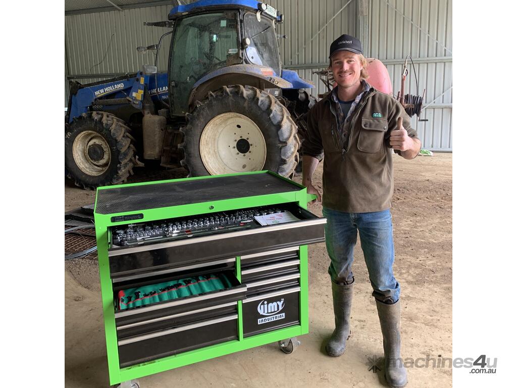 Jimy tool boxes are built to last with a tough industrial powder coating, 1.0mm thick steel, fully lockable with a rear internal locking system, dual gas strut system for lidbearing slide drawers with twin slides on the deeper drawers.