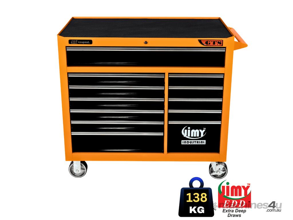 Jimy tool boxes are built to last with a tough industrial powder coating, 1.0mm thick steel, fully lockable with a rear internal locking system, dual gas strut system for lidbearing slide drawers with twin slides on the deeper drawers.
