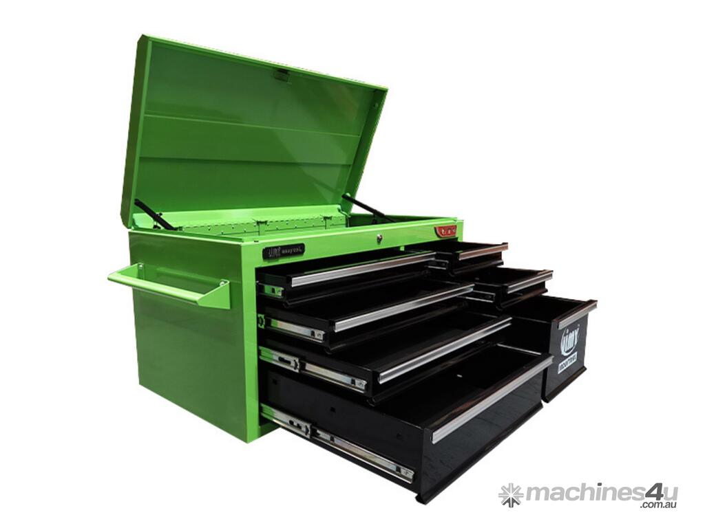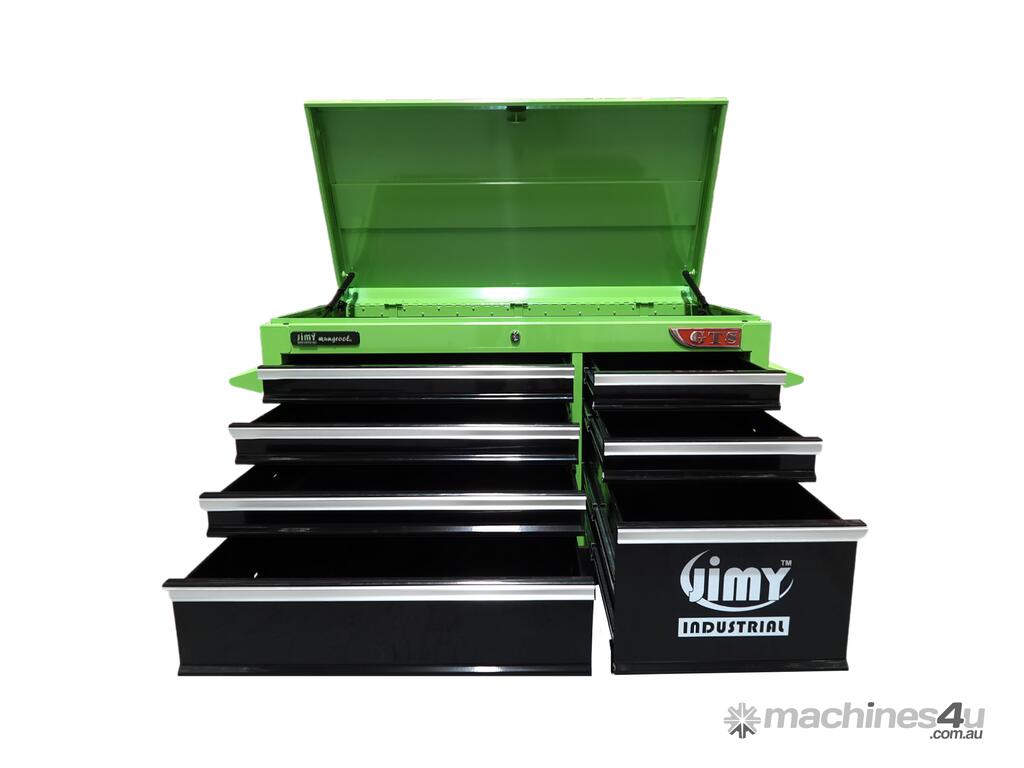 Jimy tool boxes are built to last tough industrial powder coating, 1.0mm thick steel, fully lockable with a rear internal locking system, dual gas struts for the lidbearing slide drawers with twin slides on the deeper drawers