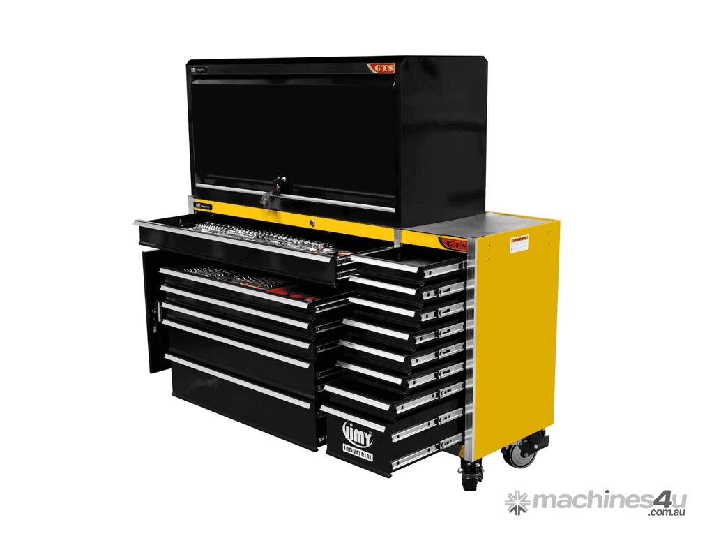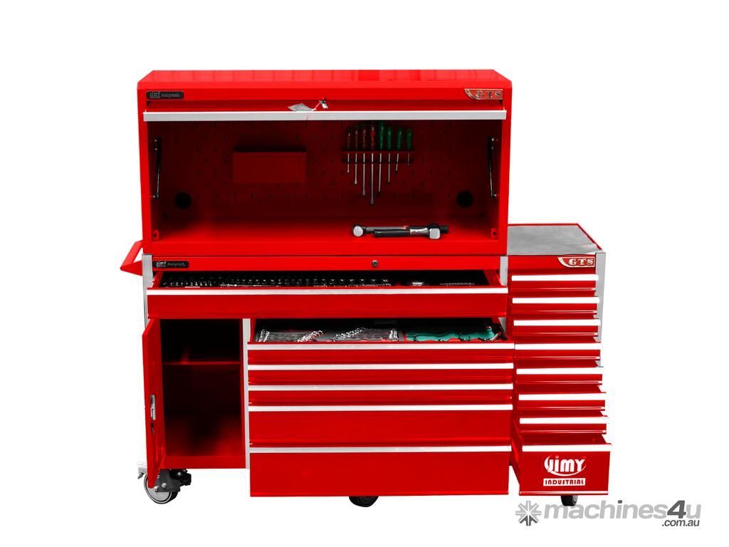 The 14 drawer “Introductory" hutch tool workshop from Jimy Tools offers a great range of tools for the professional mechanic. The kit consists of a hutch top box and an 11-drawer roller cabinet, all have been powder coated with a tough industrial finish, 1.2mm thick steel, fully lockable with rear internal locking system, dual gas strut system for the hutchandball bearing slide drawers with twin slides on the deeper drawers. Included are metric 4mm - 32mm and SAE 5/32" - 1-1/4" sockets and a full complement of 1/4", 3/8" and 1/2" drive socket accessories including ratchets, breaker bars, extensions bars from 50mm up to 900mm long.
