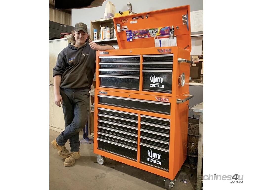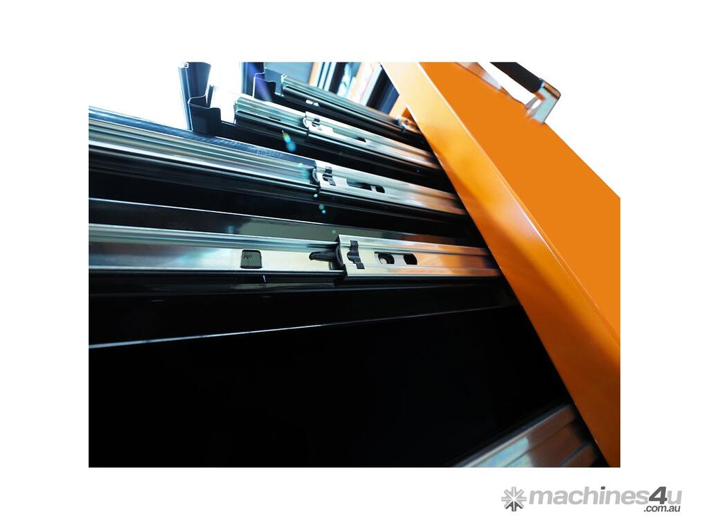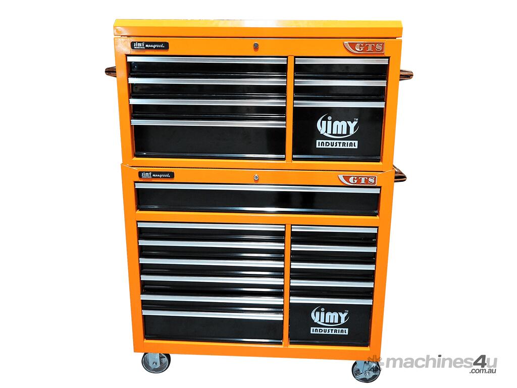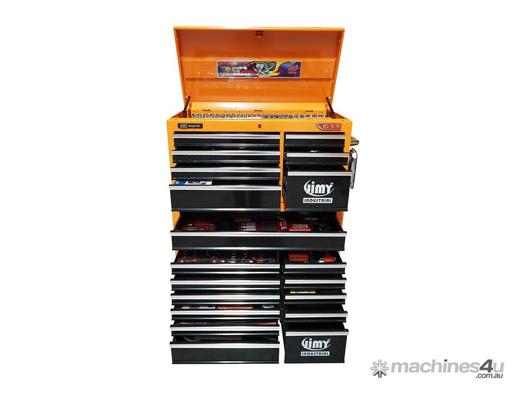 Jimy tool boxes are built to last with a tough industrial powder coating, 1.0mm thick steel, fully lockable with a rear internal locking system, dual gas strut system for lidbearing slide drawers with twin slides on the deeper drawers.