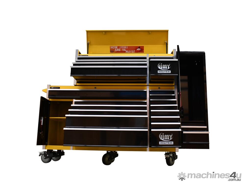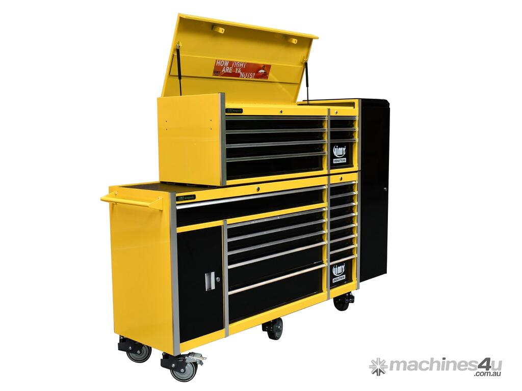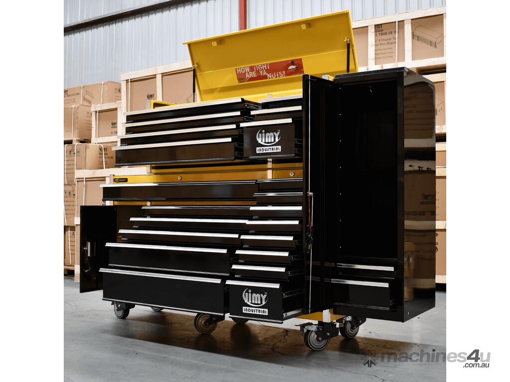 Jimy toolboxes are built to last! Tough industrial powder coating, 1.2mm gauge steel thickness, fully lockable bearing slide rails on the drawers with twin slide rails on the deeper drawers.