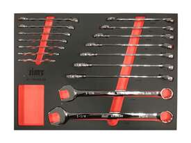 The Introductory GTS Tool Kit from Jimy Tools is perfect for the professional Tradesman or Apprentice who wants the biggest & best value for their money. What a good place to start if you’re new to the mechanical trades, or an old hand, this tool kit makes sense containing a full complement of socketsin 1/4” 3/8”,1/2” drives with all the extension bars ratchets and breaker bars to suit and what about that 900mm long extension bars. With the foam drawer inserts you can easily see if you have left a tool on the job. Jimy tool boxes are built to last! Tough industrial powder coating, 1.2mm gauge steel thickness, fully lockable bearing slide rails on the drawers with twin slide rails on the deeper drawers.