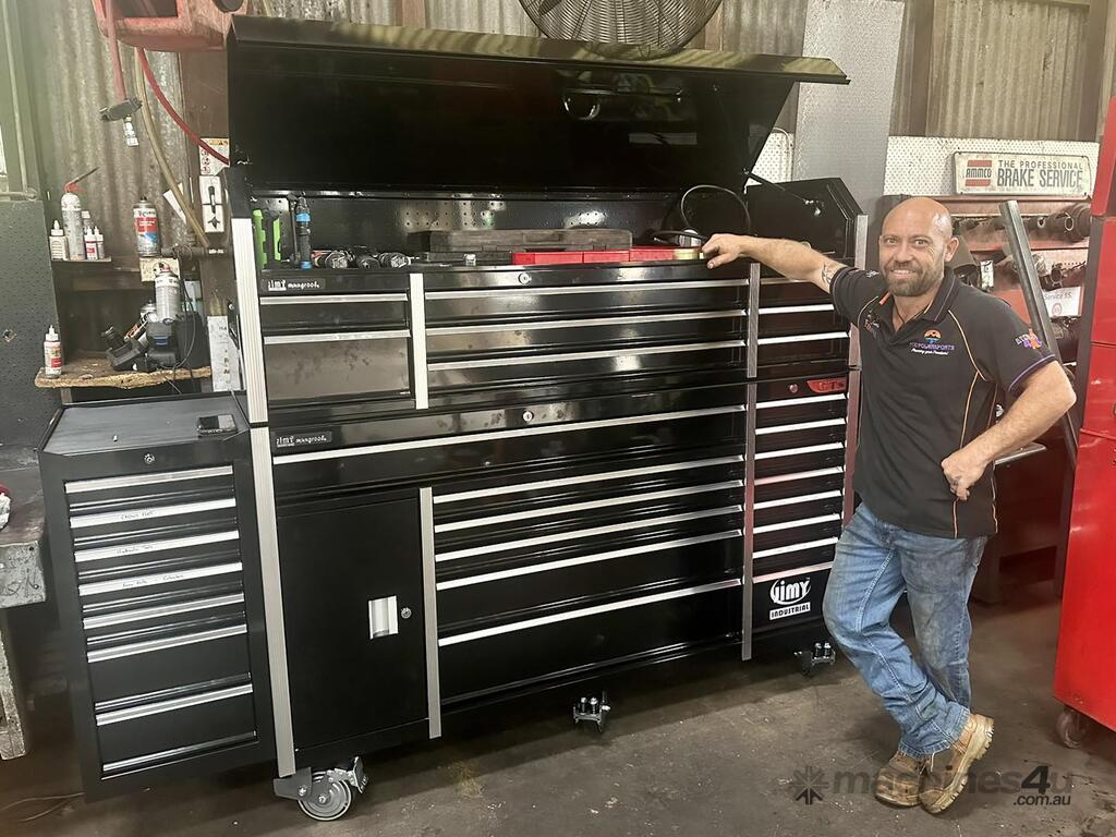 Jimy tool boxes are built to last! Tough industrial powder coating, 1.2mm gauge steel thickness, fully lockable bearing slide rails on the drawers with twin slide rails on the deeper drawers.