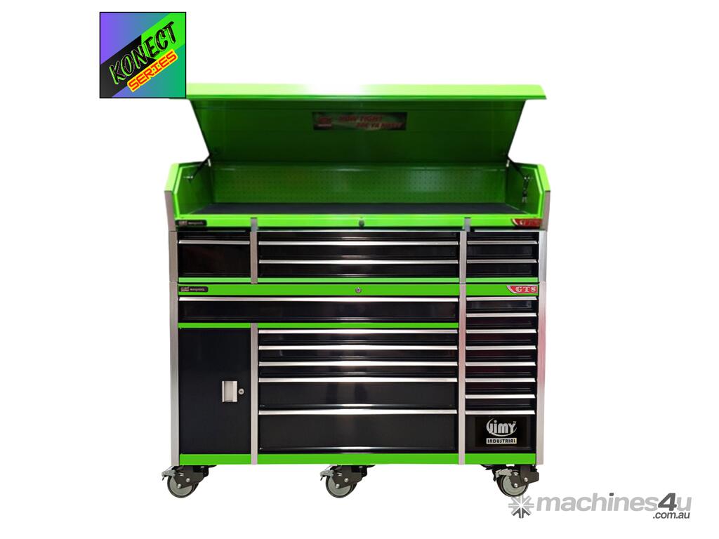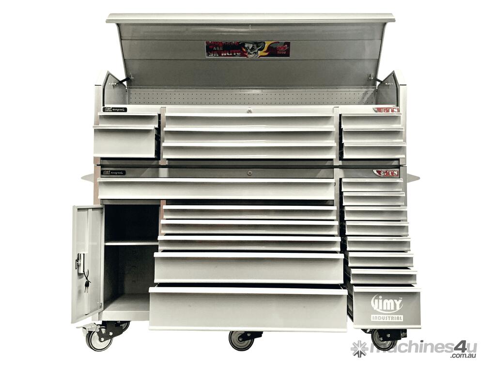 Jimy tool boxes are built to last! Tough industrial powder coating, 1.2mm gauge steel thickness, fully lockable bearing slide rails on the drawers with twin slide rails on the deeper drawers.