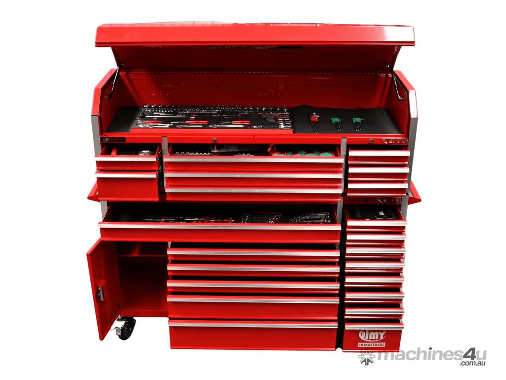 Jimy tool boxes are built to last! Tough industrial powder coating, 1.2mm gauge steel thickness, fully lockable bearing slide rails on the drawers with twin slide rails on the deeper drawers.