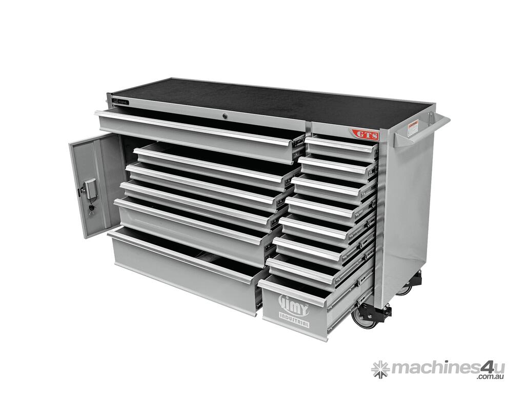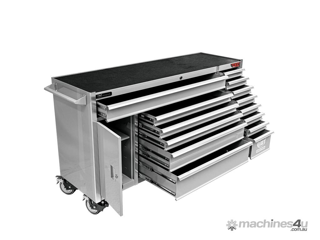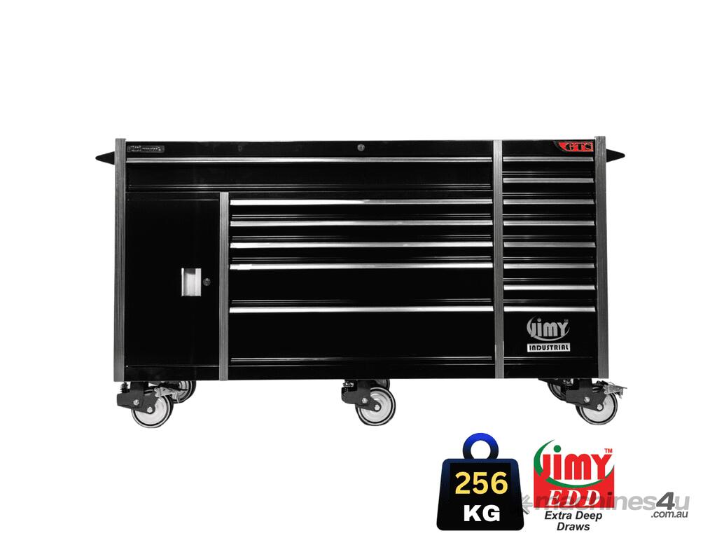 Jimy tool boxes are built to last! Tough industrial powder coating, 1.2mm gauge steel thickness, fully lockable bearing slide rails on the drawers with twin slide rails on the deeper drawers.