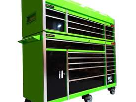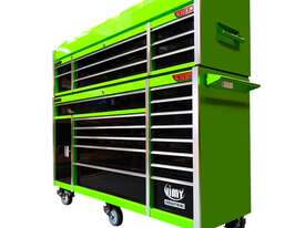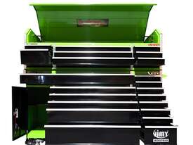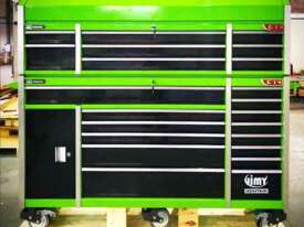 Jimy tool boxes are built to last! Tough industrial powder coating, 1.2mm gauge steel thickness, fully lockable bearing slide rails on the drawers with twin slide rails on the deeper drawers.