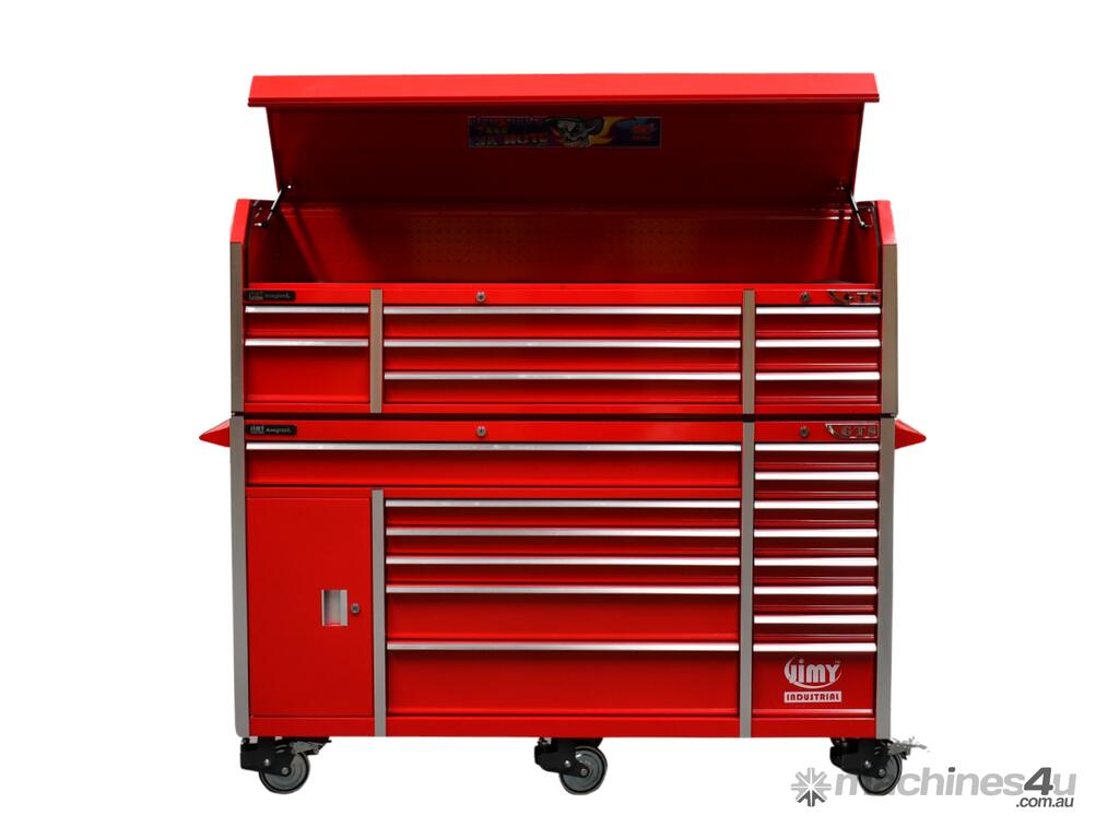 Jimy tool boxes are built to last! Tough industrial powder coating, 1.2mm gauge steel thickness, fully lockable bearing slide rails on the drawers with twin slide rails on the deeper drawers.