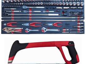 This tool kit caters for the diesel trade with a full complement of sockets in ¼”, 3/8”, ½” drives with all the extension bars ratchets and breaker bars to suit and what about that 900mm long ½” drive extension bar as well as all the spanners, pliers and hand tools you could wish for check out the list of contents below. With the foam drawer inserts you can easily see if you have left a tool on the job.