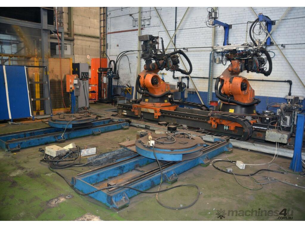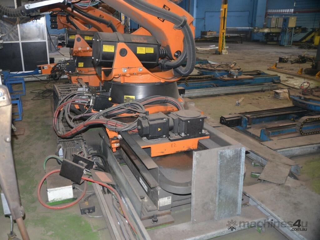 2x Kuka Robot KR mounted on KL1500/2 rail system with 2 x turntable track mounted and 2 x 10 axis Controller with teach pendant.