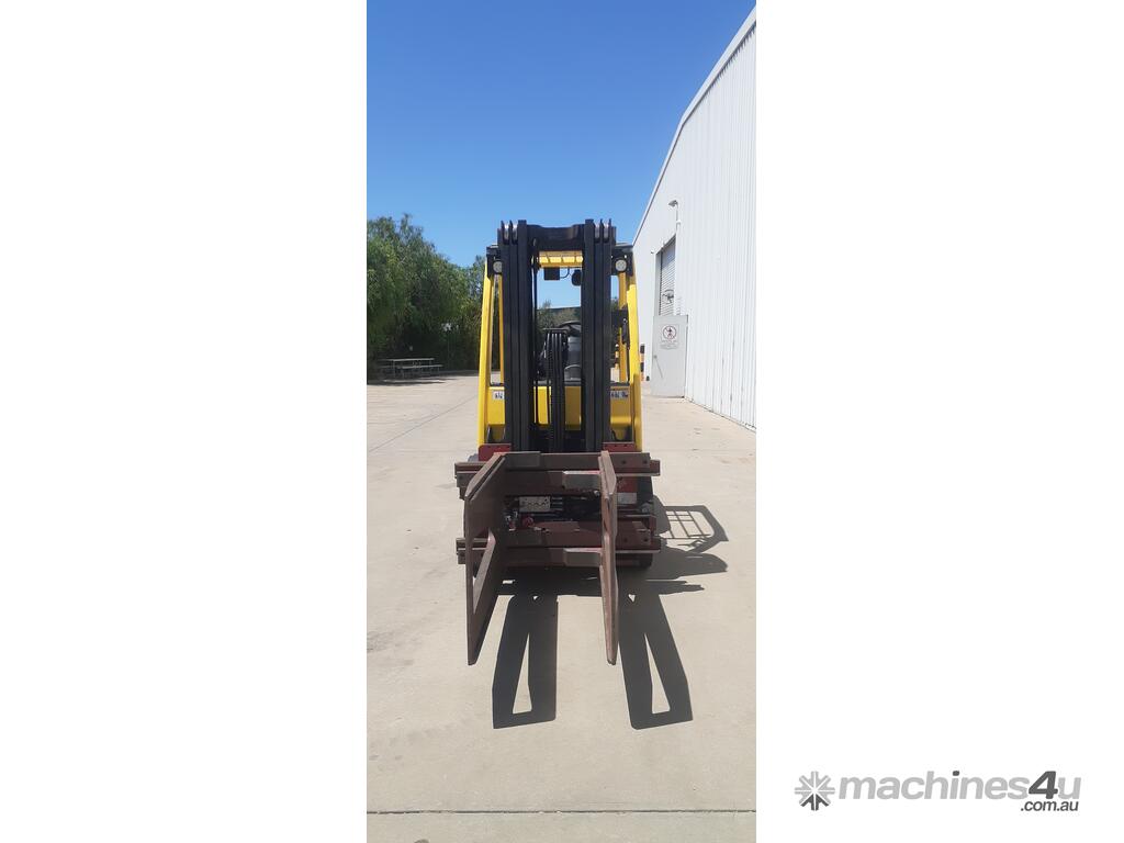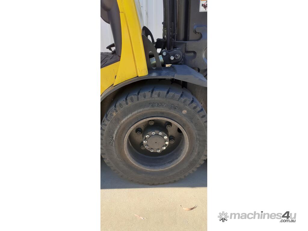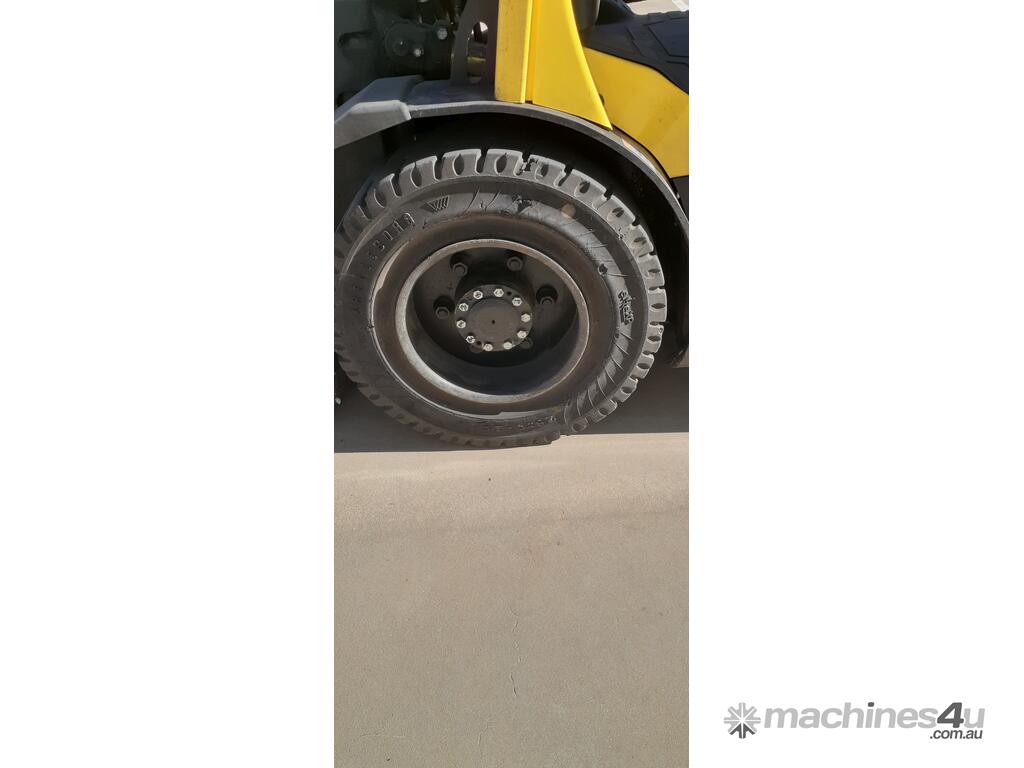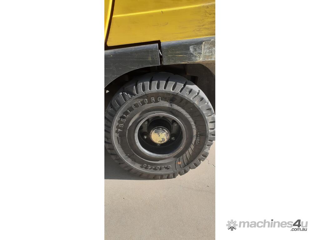 Unit is equipped with side-shift fork positioner and solid tyres.