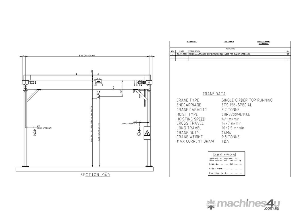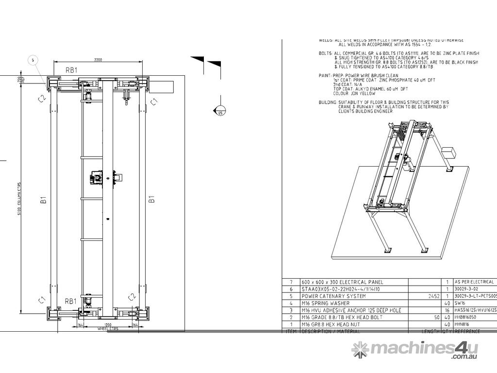 Crane span 5700mm wheel centers