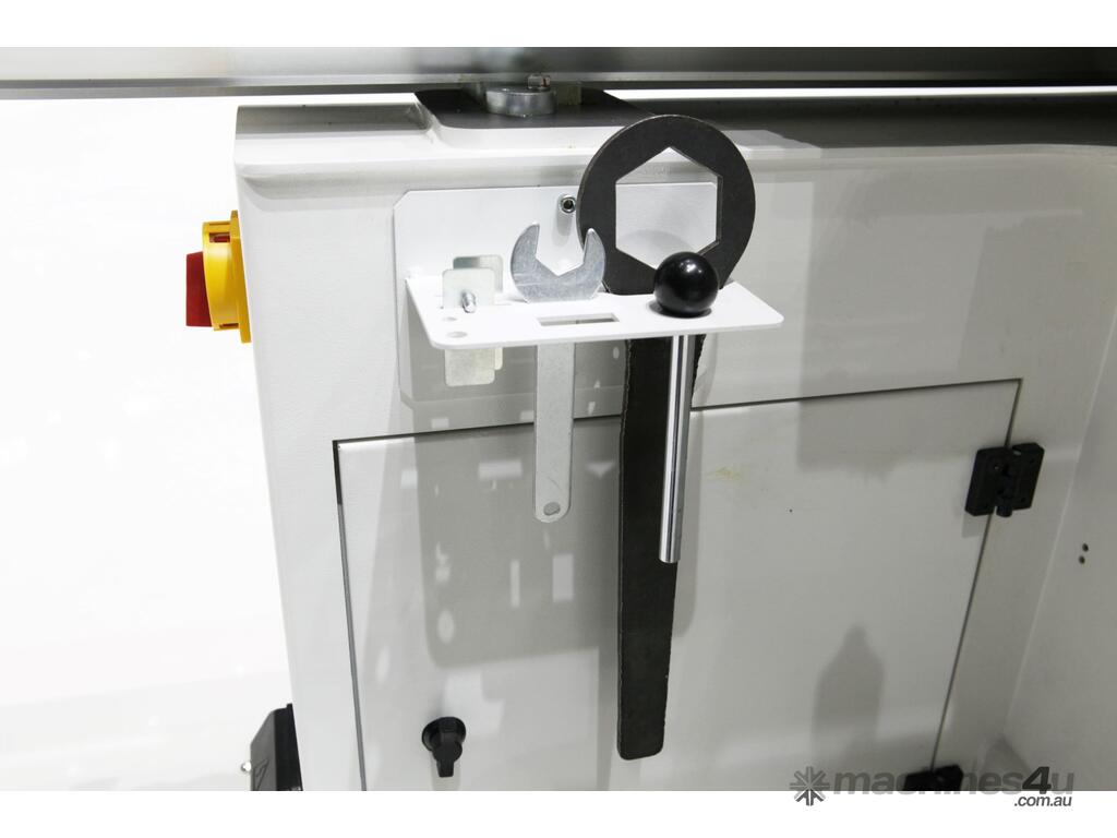 Cross-cut fence can easily move from the front to the back for different cutting requirements ensuring precise cutting. Double rulers coupled with magnifying site help the operator to read setting. Maximum 3.1m cutting length with manual locking.
